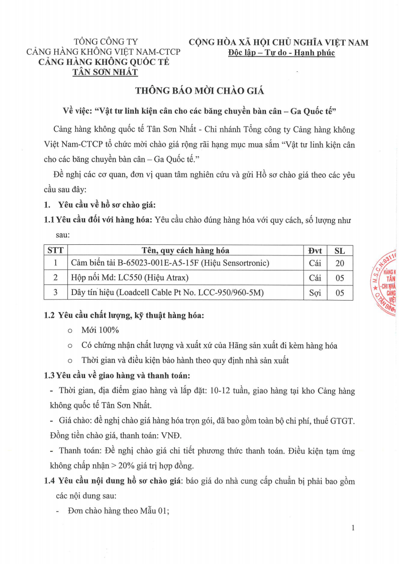 TBMCG:"Vật tư linh kiện cân cho các băng chuyền bàn cân – Ga Quốc tế"