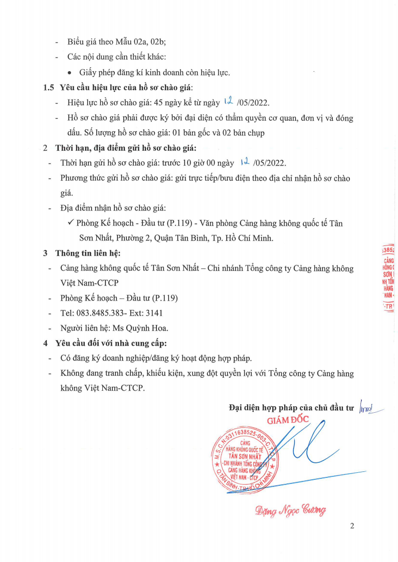 TBMCG: "Cung cấp nhân công giữ xe 2 bánh và ô tô năm 2026 - Cảng HKQT Cần Thơ"