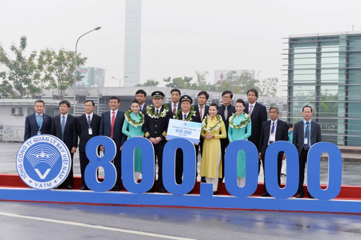 Chuyến bay đặc biệt mang số hiệu VN220 của Vietnam Airlines từ Tp.Hồ Chí Minh đến Hà Nội, hạ cánh xuống Cảng HKQT Nội Bài lúc 10h05 ngày 27/12/2017, đánh dấu chuyến bay điều hành thứ 800 nghìn trong năm 2017 của VATM. Đây cũng là chuyến bay chở hành khách thứ 94 triệu thông qua các cảng hàng không của ACV trong năm 2017 là ông Nguyễn Văn Huynh (quốc tịch Việt Nam) và Hội viên Bông Sen Vàng thứ 1,5 triệu của Vietnam Airlines là ông Nguyễn Thanh Sơn (quốc tịch Việt Nam).