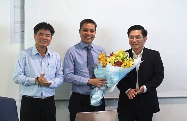 Bí thư Đảng uỷ, Chủ tịch HĐQT Nguyễn Nguyên Hùng và Tổng Giám đốc Lê Mạnh Hùng tặng hoa chúc mừng đồng chí Vũ Thế Phiệt