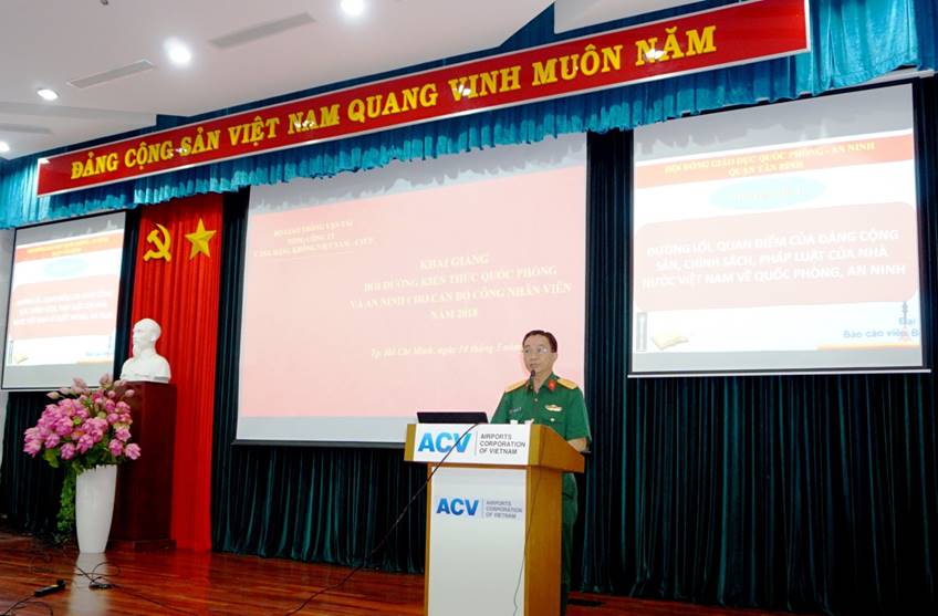 Sáng ngày 10/5/2018, Ban Chỉ huy quân sự Tổng công ty Cảng hàng không Việt Nam – CTCP (ACV) phối hợp với Ban Chỉ huy quân sự quận Tân Bình tổ chức khai giảng lớp bồi dưỡng kiến thức quốc phòng an ninh năm 2018 cho học viên thuộc đối tượng 4 là CBCNV Khối cơ quan Tổng công ty.