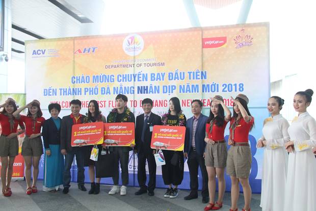 Tại buổi lễ, lãnh đạo Sở Du lịch Đà Nẵng, Cảng HKQT Đà Nẵng và Văn phòng Vietjet miền Trung đã nhiệt liệt chào đón, tặng quà cho những hành khách đầu tiên đến Đà Nẵng trong năm 2018.