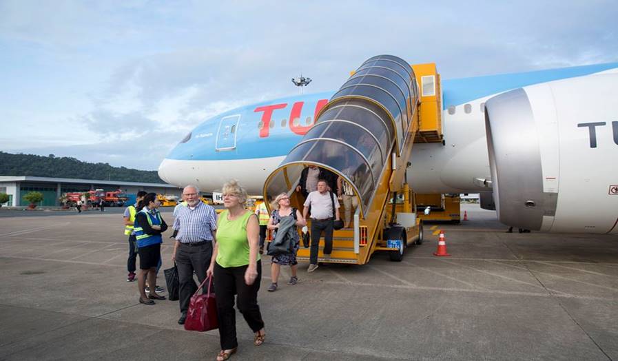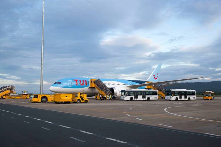 Sáng ngày 02/11/2017, chuyến bay Boeing 787 Dreamliner mang số hiệu BY064 của hãng hàng không TUI FLY đã đưa 261 hành khách cùng với 14 thành viên phi hành đoàn đáp chuyến bay đầu tiên chở khách từ London (Vương quốc Anh) tới Cảng HKQT Phú Quốc sau gần 12h đồng hồ bay. Đây là chuyến bay thẳng đầu tiên của hãng chở hành khách từ Vương quốc Anh đến Phú Quốc.