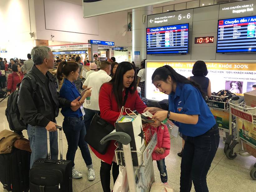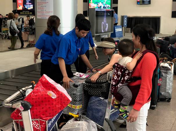 Đoàn viên thanh niên Cảng HKQT Tân Sơn Nhất xung kích tình nguyện hỗ trợ hành khách dịp cao điểm Tết Mậu Tuất 2018