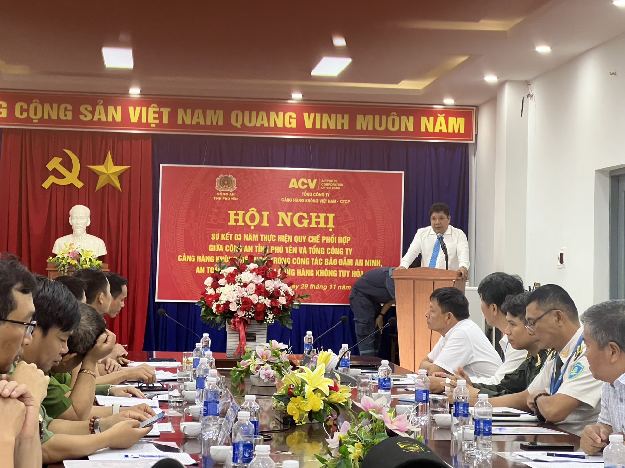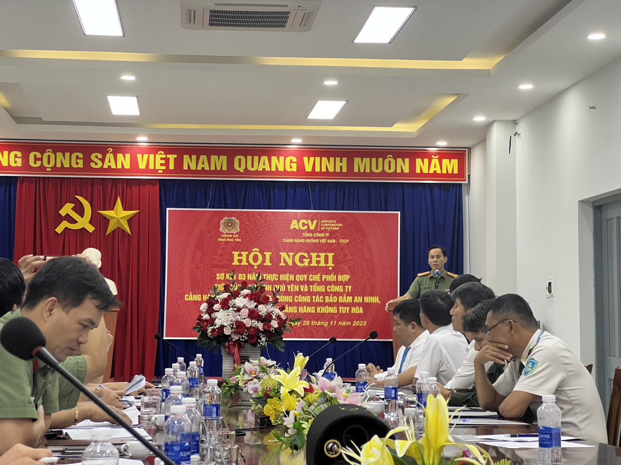 Ngày 29/11/2023, tại Cảng hàng không Tuy Hòa tổ chức hội nghị sơ kết 03 năm triển khai thực hiện Quy chế phối hợp giữa Công an tỉnh Phú Yên và Tổng công ty Cảng hàng không Việt Nam về công tác đảm bảo an ninh, an toàn hàng không tại Cảng hàng không Tuy Hòa.