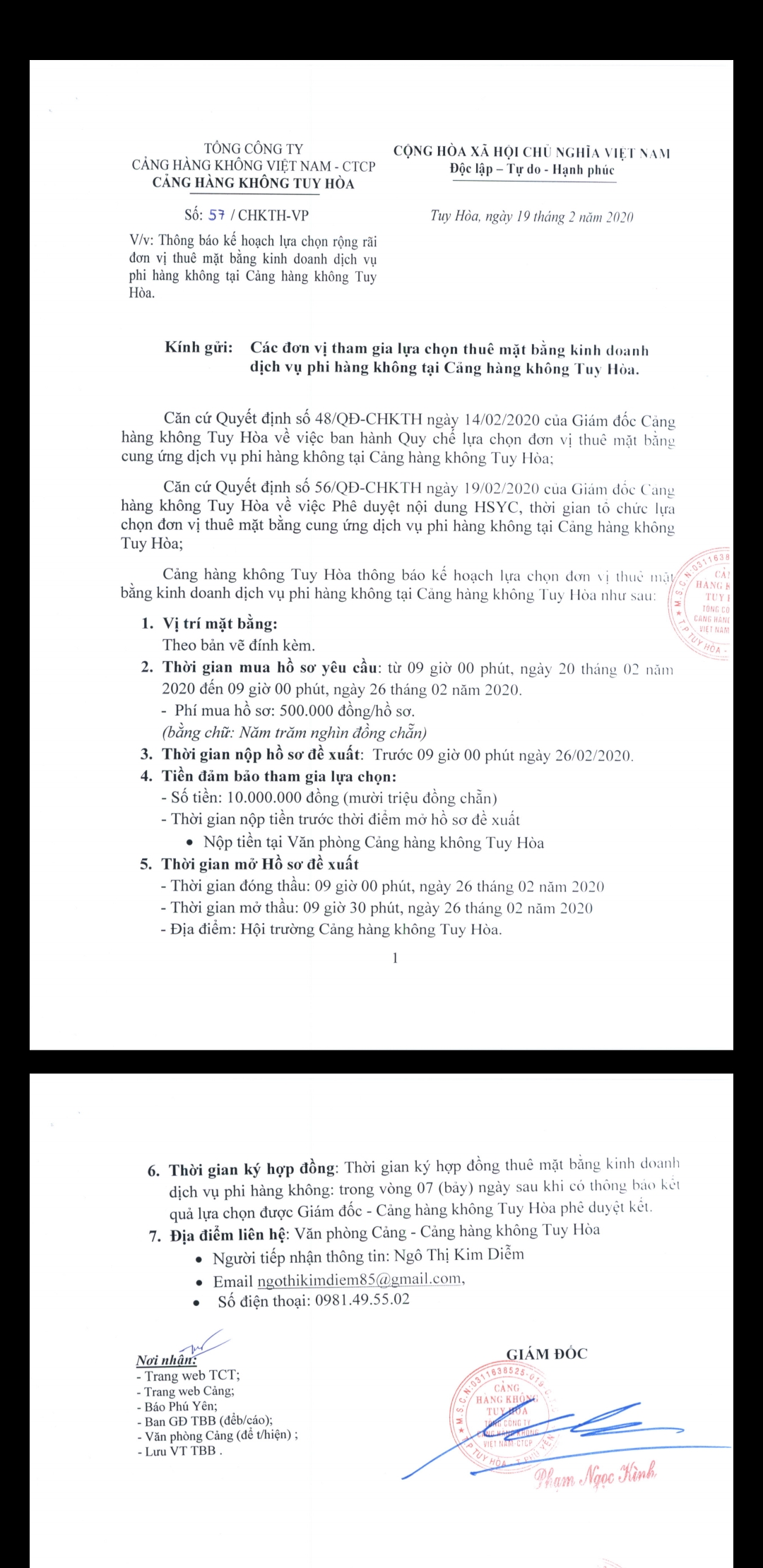 Thông báo kế hoạch lựa chọn đơn vị thuê mặt bằng kinh doanh dịch vụ phi hàng không tại Cảng hàng không Tuy Hòa