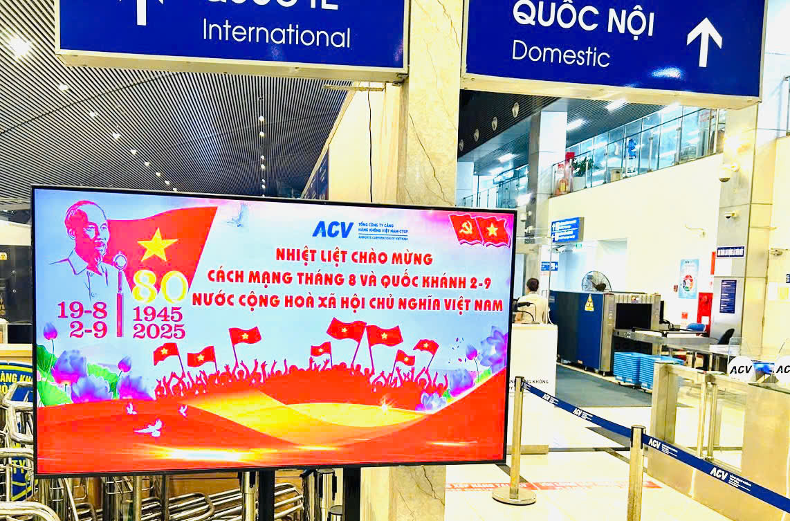 Ngay từ đầu tháng 8, khắp nhà ga hành khách được trang hoàng cờ hoa rực rỡ; các bảng điện, màn hình LED đồng loạt hiển thị hình ảnh Bác Hồ cùng thông điệp kỷ niệm 80 năm, lan tỏa niềm tri ân những trang sử hào hùng, đồng thời chào mừng sự kiện trọng đại của đất nước.