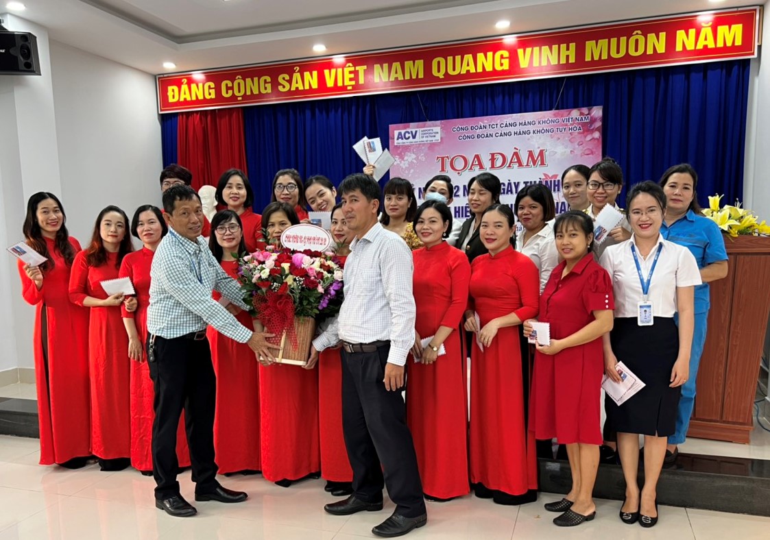 Tại Cảng hàng không Tuy Hòa chị em phụ nữ đã đóng góp rất nhiều công sức và có nhiều thành tích xuất sắc trong nhiều lĩnh vực công tác, những thành tích ấy đã góp phần không nhỏ vào thành tích chung của Đơn vị. Chính vì vậy tại buổi họp mặt các Chị em đã được các “Anh” gởi đến những lời chúc, những vần thơ con cóc hay những bài hát thật ý nghĩa và đặc biệt đồng chí Chủ tịch Công đoàn Đào Khắc Nhiêu, đã tặng hòa và lời chúc mừng trân trọng những nỗ lực kết quả đạt được.
