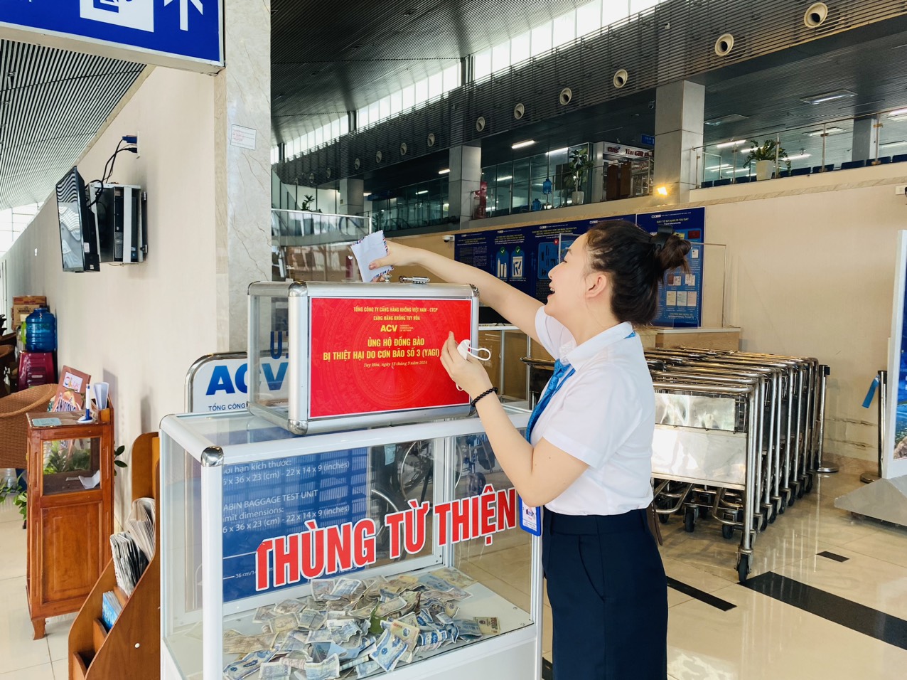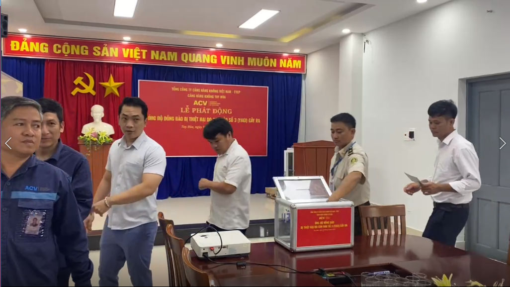 Với tinh thần chung tay cùng cả nước, sáng ngày 13/9/2024, Cảng hàng không Tuy Hòa kết nối với 22 điểm cầu các cụm cảng hàng không-trực thuộc Tổng công ty cảng hàng không việt Nam-CTCP, đã tổ chức vận động quyên góp toàn thể Cán bộ công nhân viên, người lao động thể hiện tinh thần “lá lành đùm lá rách”