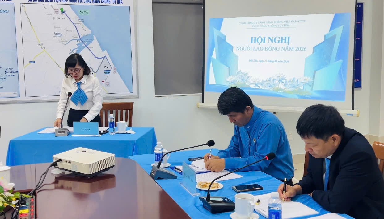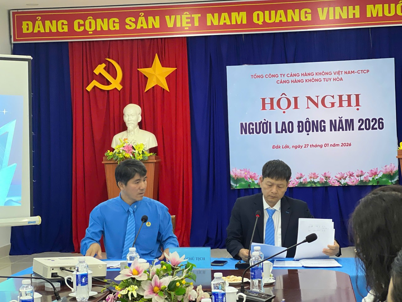 Hội nghị Người lao động năm 2026 của Cảng hàng không Tuy Hòa đã diễn ra thành công tốt đẹp, tạo sự đồng thuận, thống nhất cao giữa người lao động và người sử dụng lao động, là tiền đề quan trọng để toàn đơn vị tiếp tục phấn đấu hoàn thành tốt các nhiệm vụ được giao trong năm 2026.