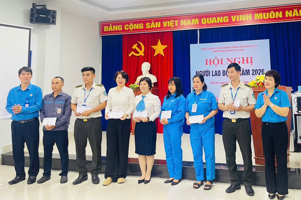 Tại Hội nghị, Cảng hàng không Tuy Hòa đã tổ chức bầu đại biểu tham dự Hội nghị Người lao động năm 2026 của Tổng công ty Cảng hàng không Việt Nam (ACV); đồng thời biểu dương, khen thưởng các cá nhân và tập thể tiêu biểu trong phong trào thi đua năm 2025.