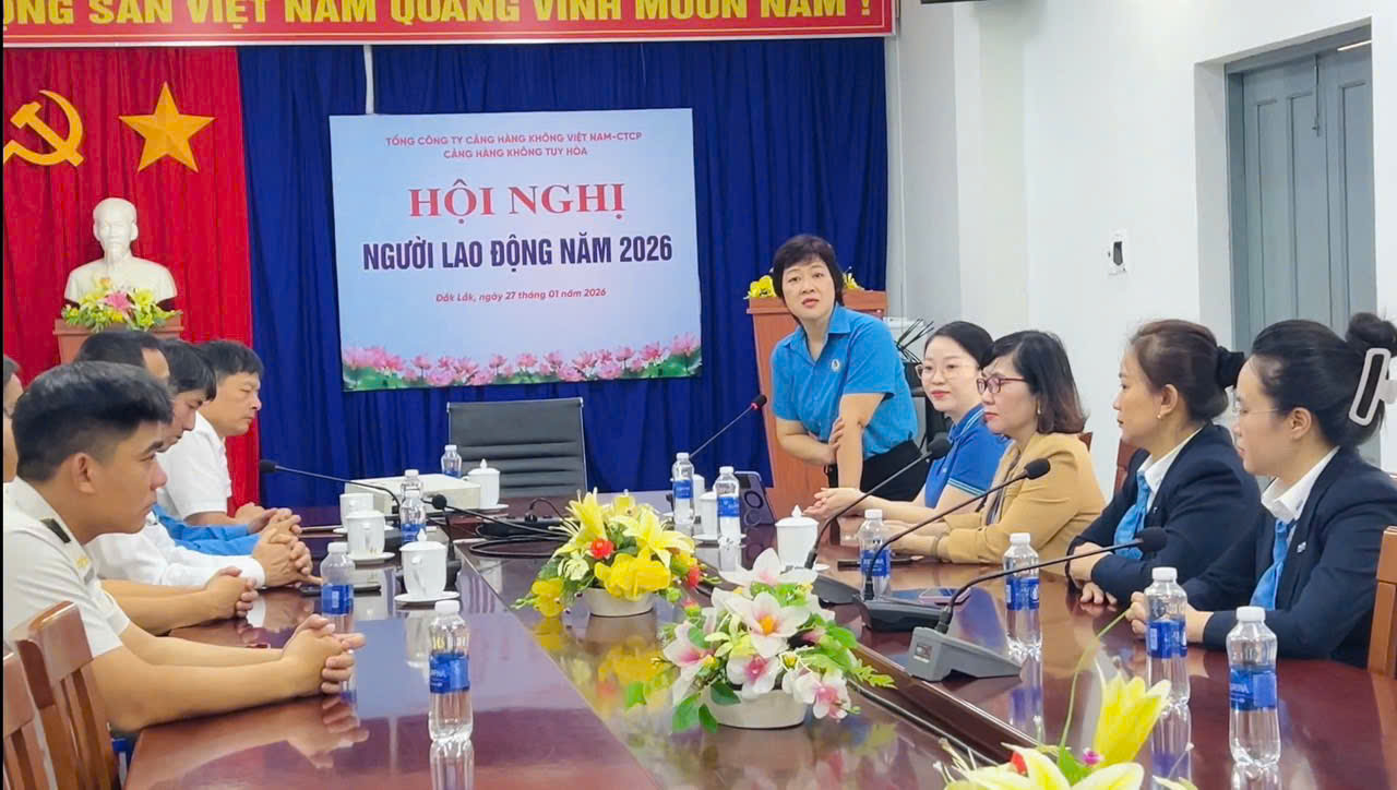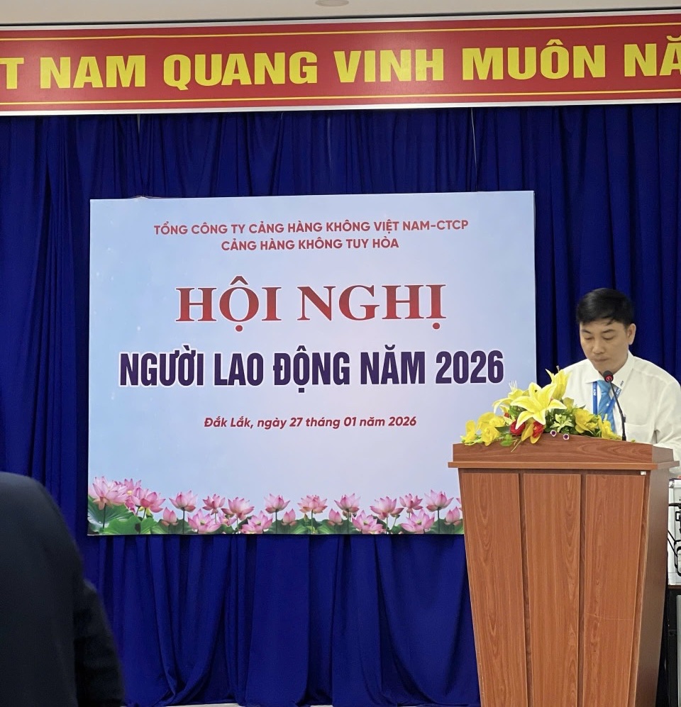 Ngày 27/01/2026, Cảng hàng không Tuy Hòa đã long trọng tổ chức Hội nghị Người lao động năm 2026. Hội nghị là dịp để người sử dụng lao động và người lao động phát huy quyền dân chủ, đối thoại trực tiếp, đánh giá kết quả thực hiện nhiệm vụ năm qua và đề ra phương hướng, nhiệm vụ trong thời gian tới.