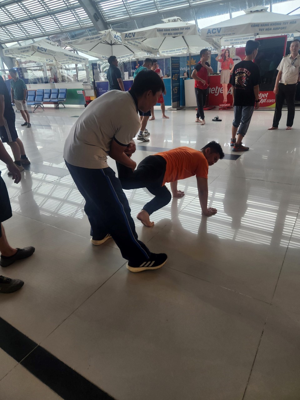 Thực hiện Quyết định số 1884/QĐ-TCTCHKVN ngày 10/5/2024 về Quy định huấn luyện nghiệp vụ tại chỗ cho lực lượng kiểm soát an ninh hàng không của Tổng công ty Cảng hàng không Việt Nam – CTCP (ACV),Từ ngày 20/05 - 20/06/2024, Cảng hàng không Tuy Hòa phối hợp với Công ty TNHH Dịch vụ Bảo vệ Huỳnh Quốc Việt tổ chức Khóa huấn luyện “Kỹ năng tự vệ” năm 2024 cho 37 học viên thuộc Lực lượng kiểm soát An ninh tại Cảng hàng không.