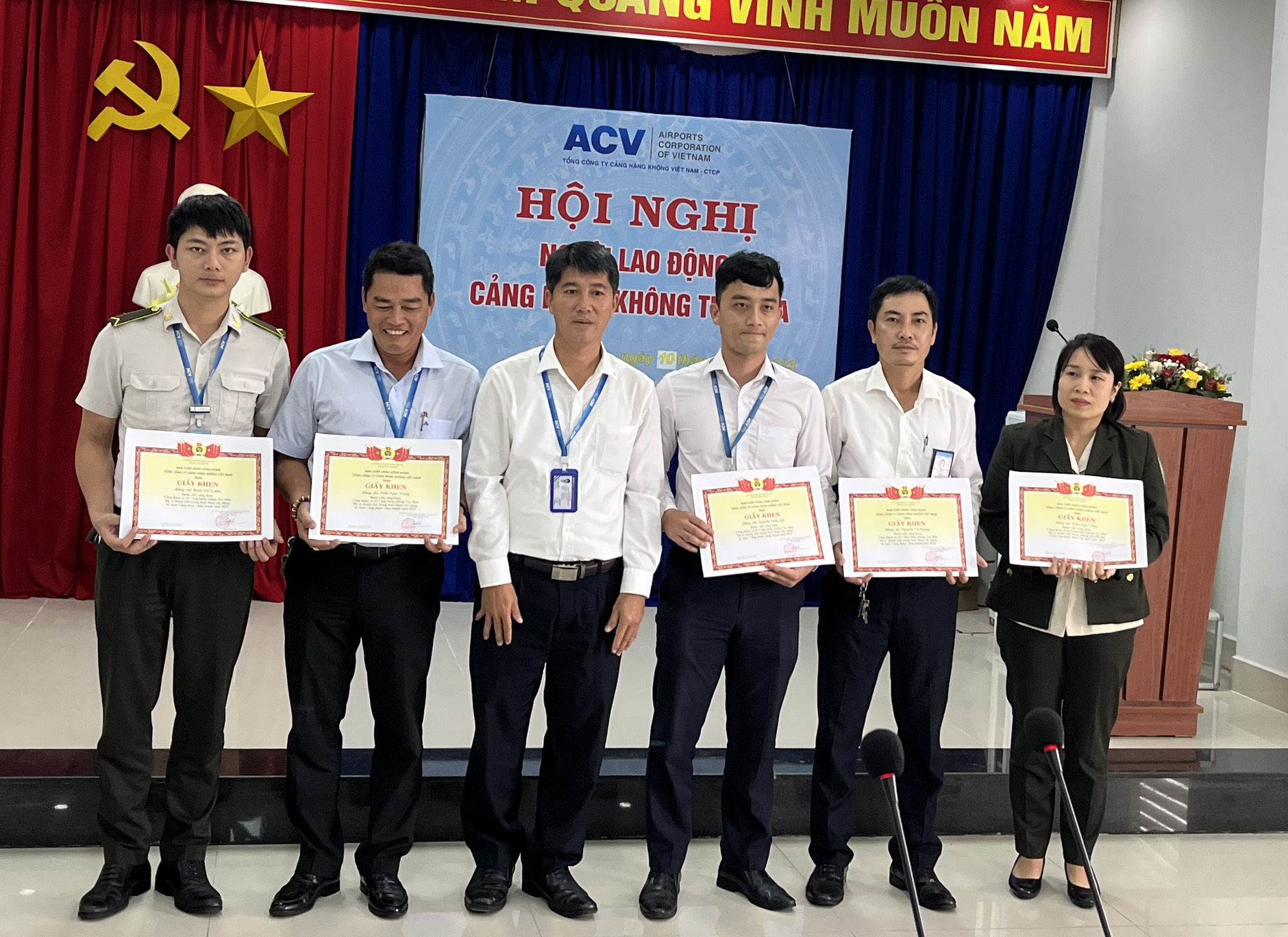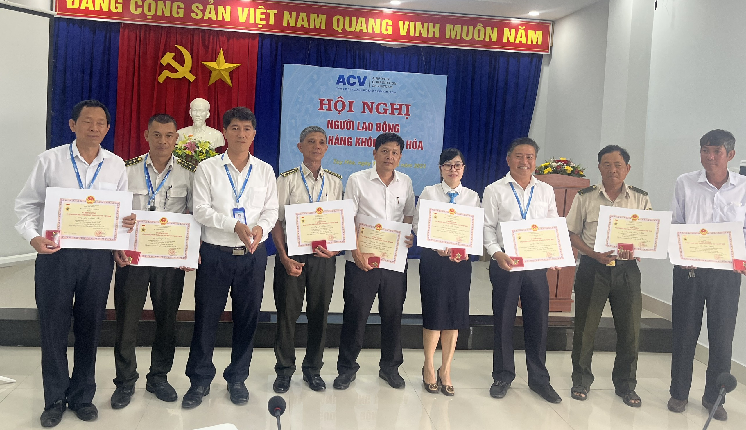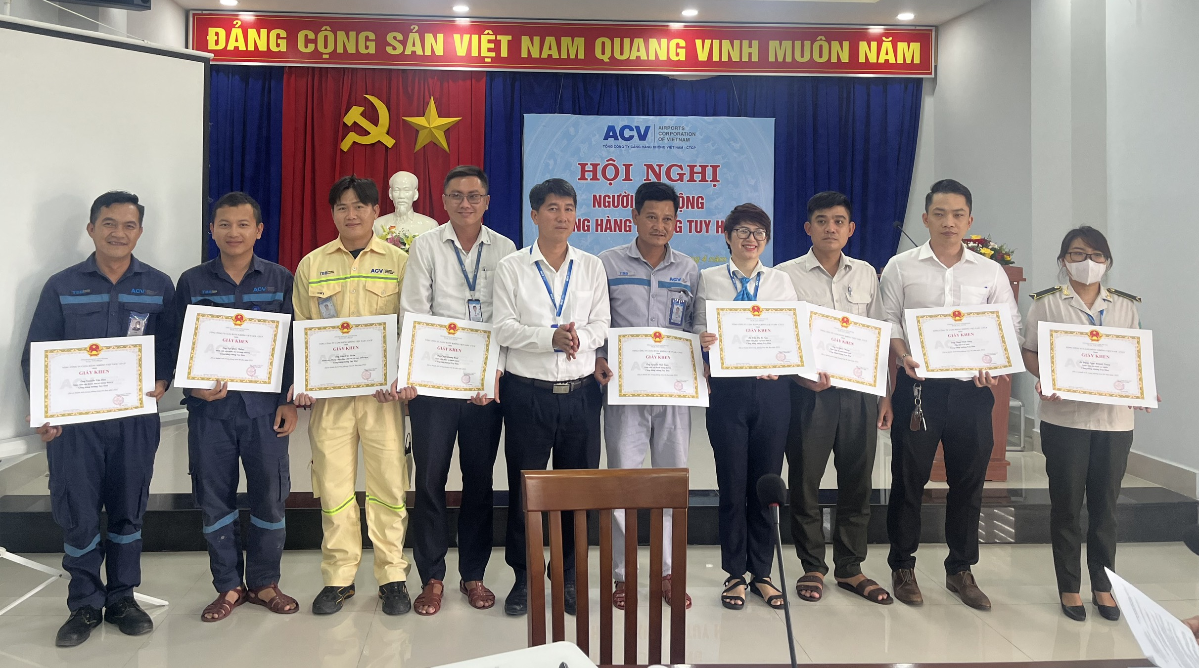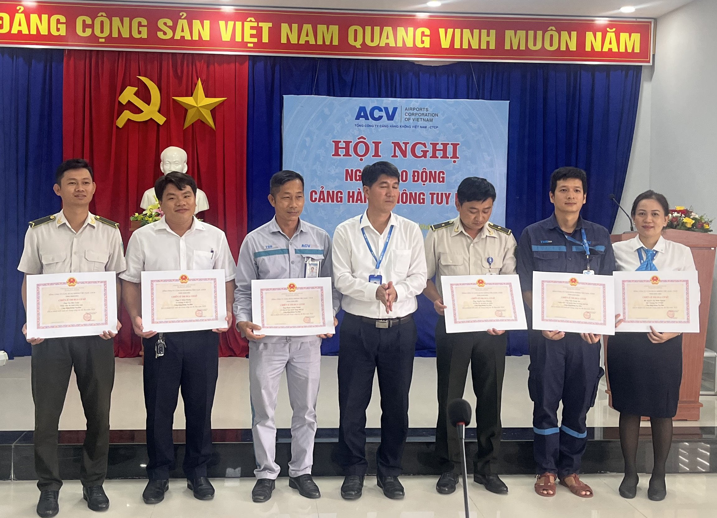 Nhân dịp này, Ban Giám đốc Cảng hàng không Tuy Hòa đã trao tặng giấy khen của Tổng Giám đốc, giấy khen được danh hiệu chiến sĩ thi đua cho các cá nhân đạt thành tích xuất sắc trong năm 2022.
