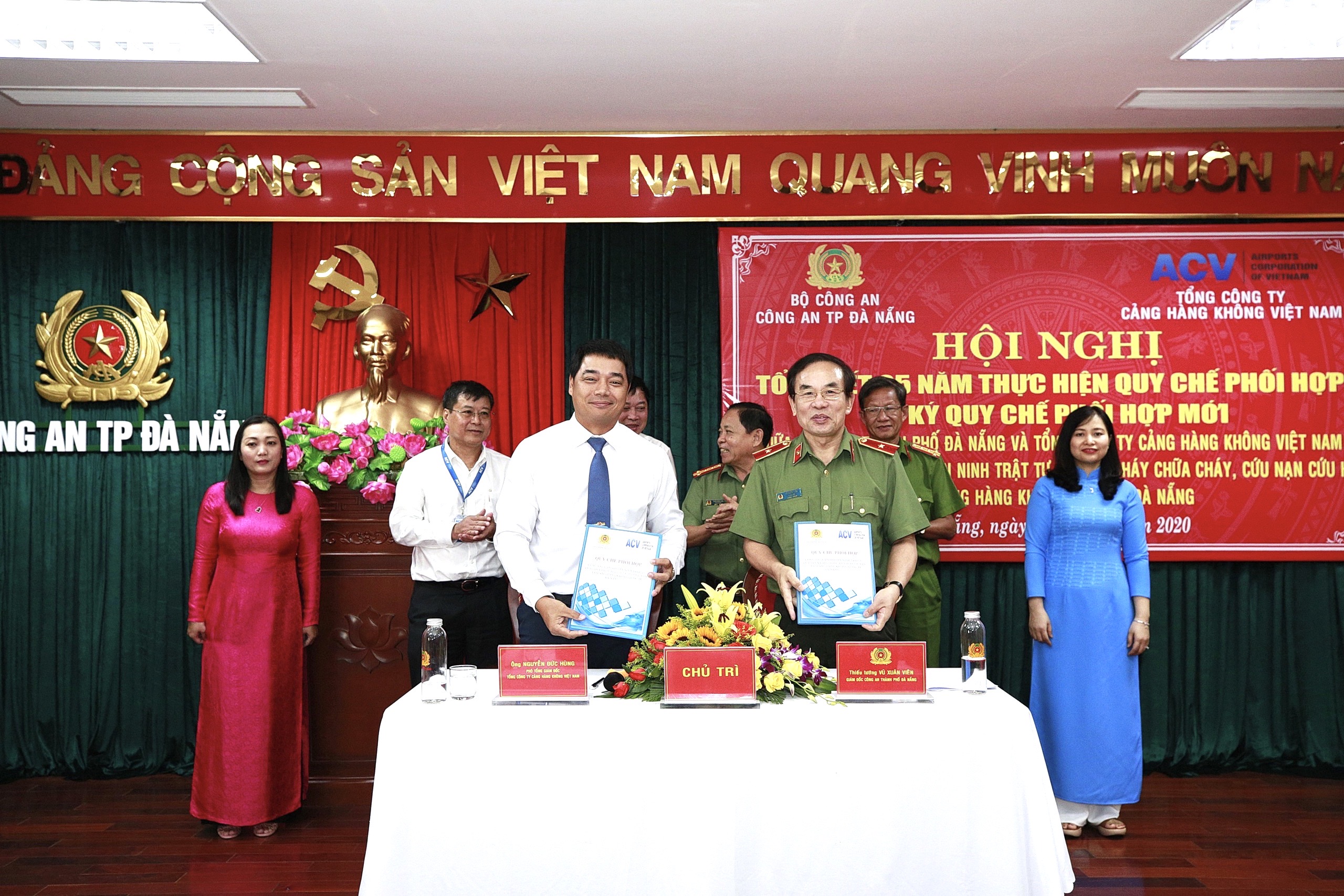 Ngày 22/6/2020, Tổng công ty Cảng hàng không Việt Nam - CTCP (ACV) đã phối hợp với Công an thành phố Đà Nẵng (CATP) tổ chức Hội nghị Tổng kết 05 năm triển khai thực hiện Quy chế phối hợp trong công tác đảm bảo an ninh trật tự, an toàn xã hội, phòng cháy, chữa cháy cứu hộ cứu nạn tại Cảng hàng không quốc tế Đà Nẵng và tiến hành ký Quy chế phối hợp mới.