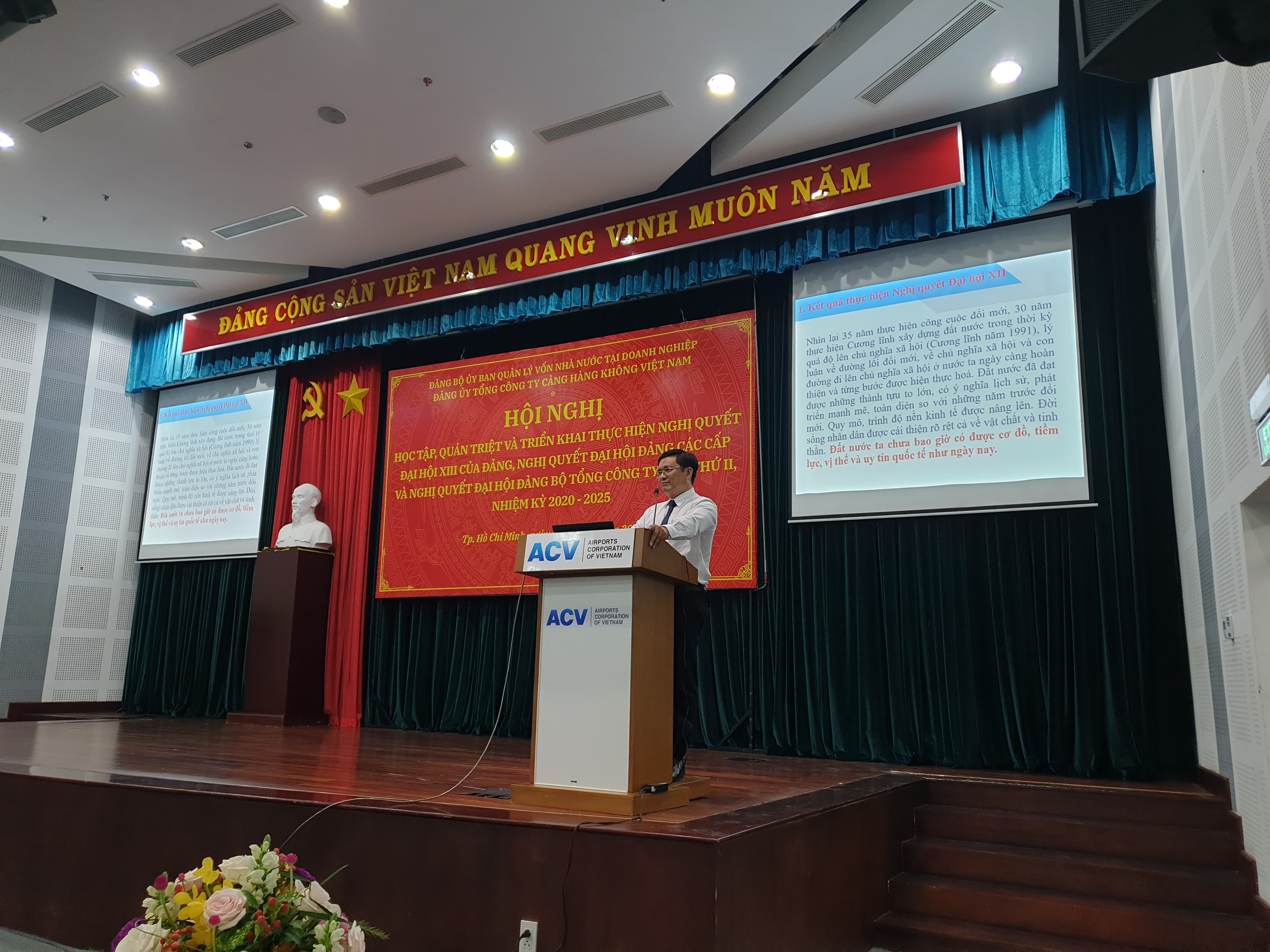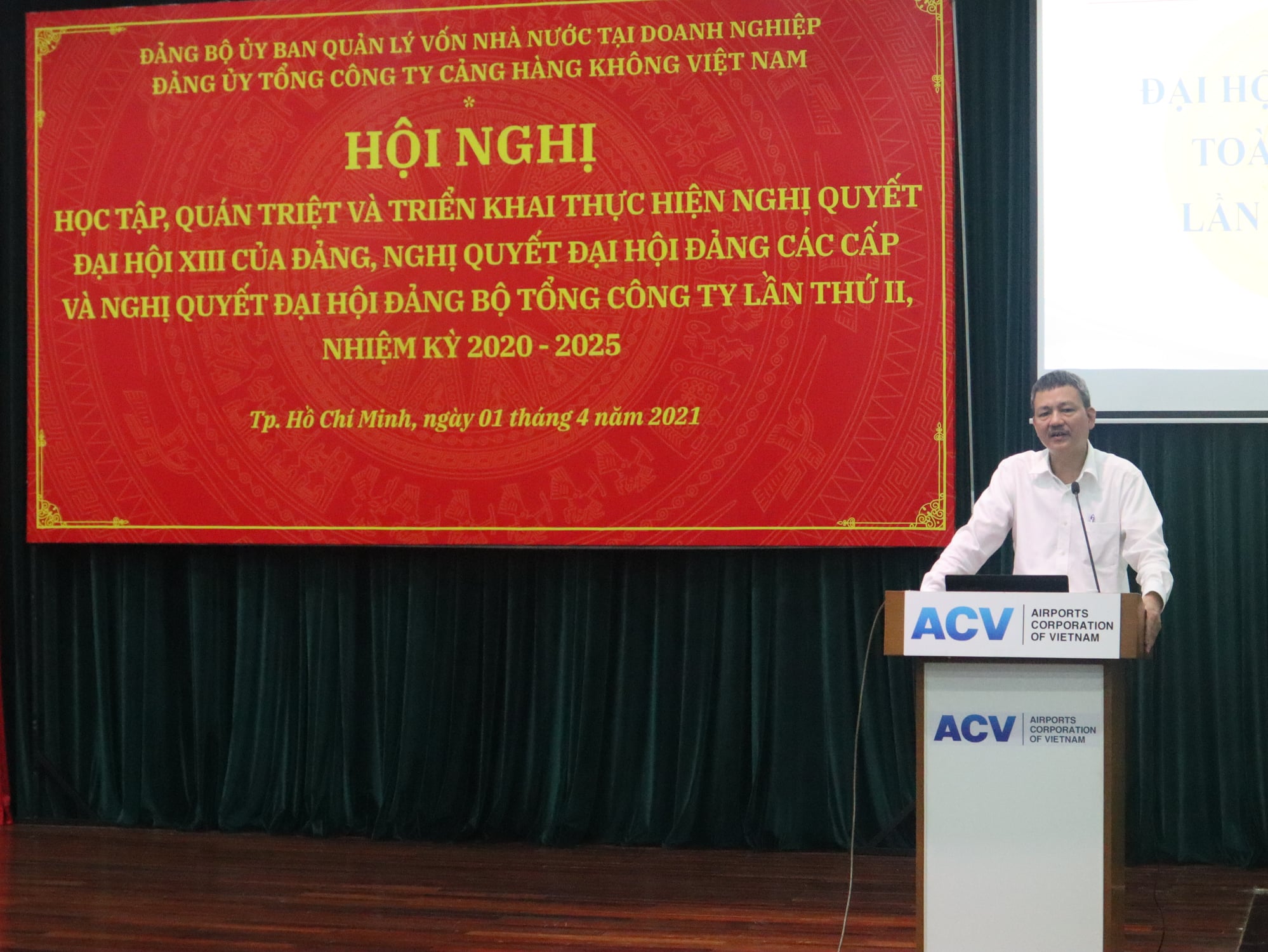 Ngày 01/4/2021, Đảng ủy Tổng công ty Cảng hàng không Việt Nam (ACV) đã tổ chức hội nghị học tập, quán triệt và triển khai thực hiện Nghị quyết Đại hội lần thứ XIII của Đảng, Nghị quyết Đại hội Đảng bộ Ủy ban Quản lý vốn Nhà nước tại doanh nghiệp lần thứ I và Nghị quyết Đại hội Đảng bộ Tổng công ty Cảng hàng không Việt Nam lần thứ II, nhiệm kỳ 2020-2025 tại trụ sở ACV.