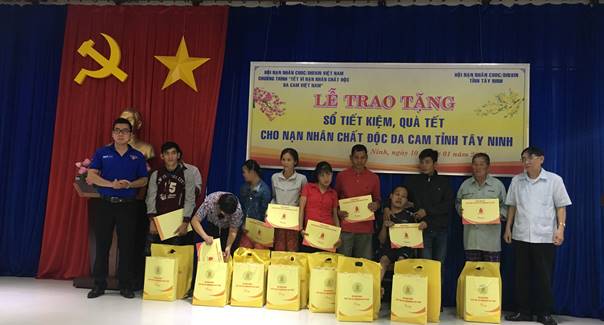 Trong khuôn khổ chương trình “Tết vì nạn nhân chất độc da cam Việt Nam” lần thứ I năm 2019 do Tạp chí Da cam và các cơ quan hữu quan phối hợp tổ chức tại 16 tỉnh, thành phố trong cả nước, ngày 10/01/2019, Tổng công ty Cảng hàng không Việt Nam – CTCP ( ACV) cùng Ban tổ chức chương trình đã trao tặng sổ tiết kiệm và tặng quà cho 28 gia đình nạn nhân chất độc da cam tại tỉnh Tây Ninh.