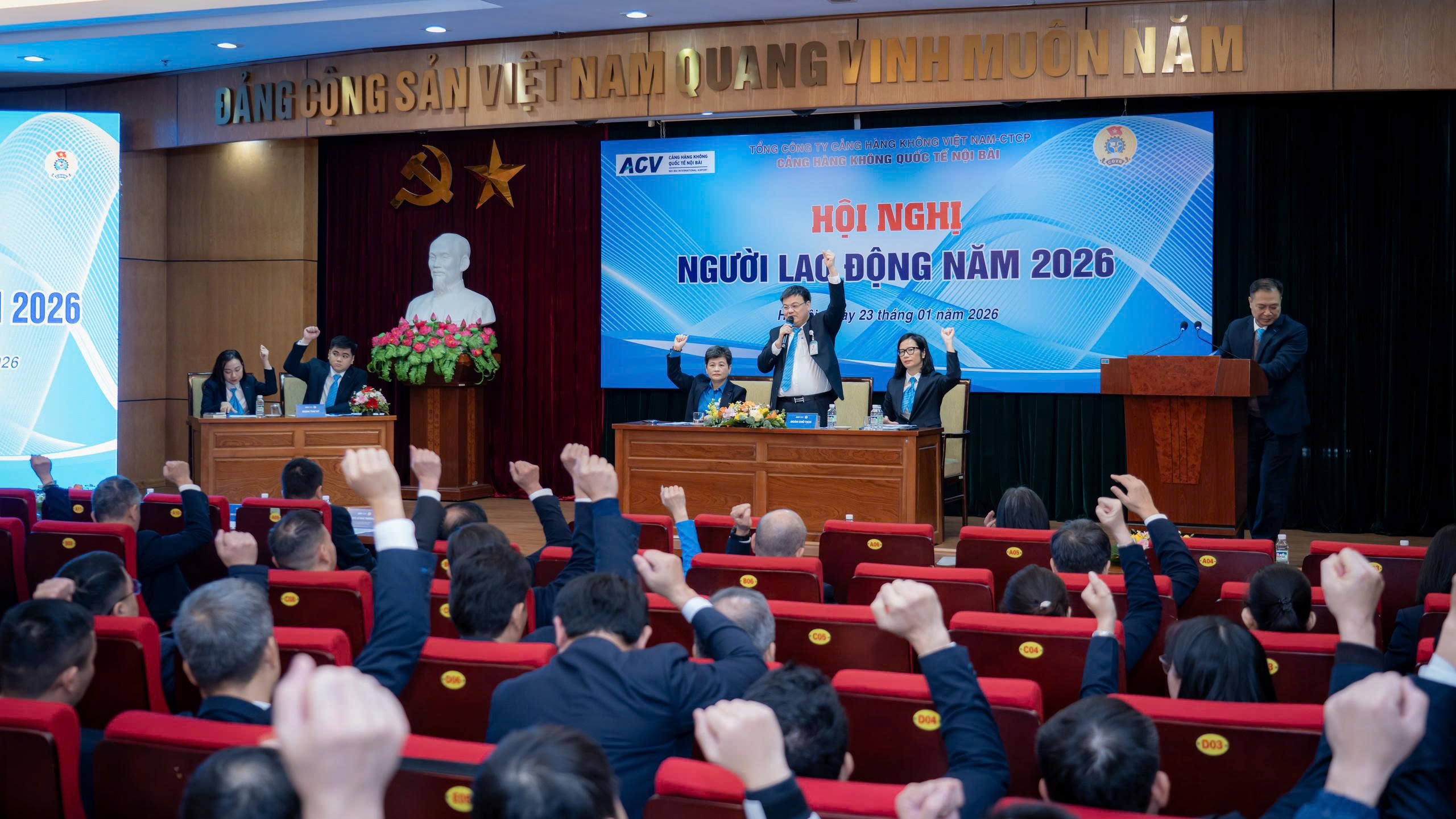 Sáng ngày 23/01/2026, Cảng HKQT Nội Bài đã tổ chức thành công Hội nghị Người lao động năm 2026. Với sự tham gia của 99 đại biểu đại diện cho hơn 2.600 cán bộ nhân viên, hội nghị không chỉ tổng kết những dấu ấn rực rỡ của năm 2025 mà còn là nơi lan tỏa quyết tâm "chuyển mình" tư duy, hướng tới những mục tiêu kỷ lục mới.
