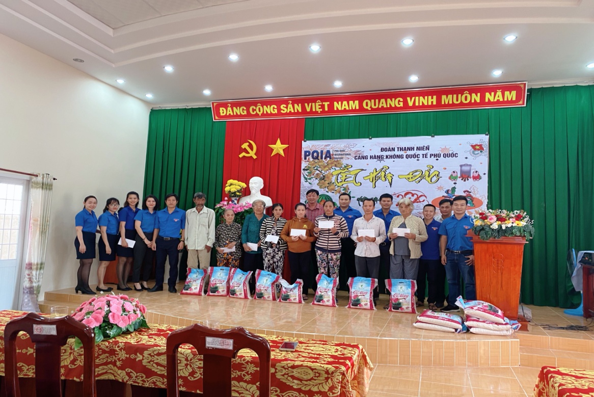 Phát huy tình thần tương thân tương ái, góp phần hỗ trợ các gia đình có hoàn cảnh khó khăn đón Tết Canh Tý đầm ấm, hạnh phúc, ngày 14/01/2020, BCH Công đoàn – Đoàn thanh niên Cảng HKQT Phú Quốc tổ chức chương trình “Xuân biên giới, Tết hải đảo” năm 2020, thăm hỏi và tặng quà các gia đình chính sách, gia đình có hoàn cảnh khó khăn tại xã Hàm Ninh và xã Dương Tơ, huyện Phú Quốc, tỉnh Kiên Giang.