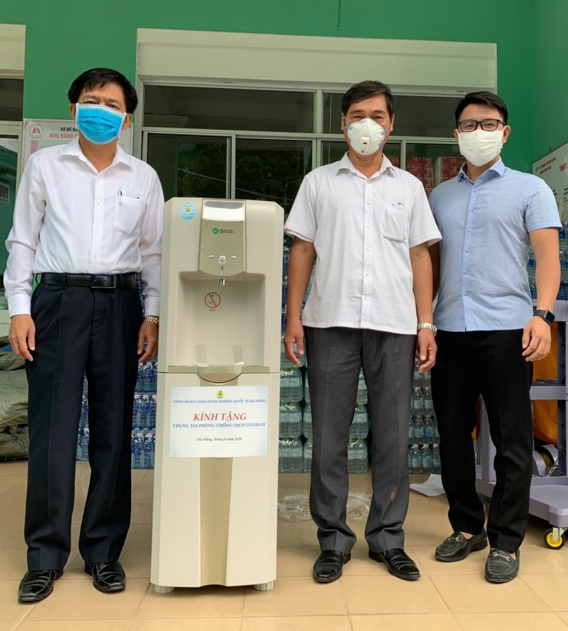 Trước diễn biến hết sức phức tạp của dịch bệnh Covid-19, với tinh thần cùng chung tay, đồng hành cùng Ban chỉ đạo thành phố Đà Nẵng về phòng chống dịch và các y bác sỹ nơi tuyến đầu chống dịch, sáng ngày 04/8/2020, Công đoàn Cảng HKQT Đà Nẵng do ông Tô Ngọc Hải – Phó Giám đốc, Chủ tịch công đoàn làm đại diện đã trao tặng Bệnh viện Phổi Đà Nẵng và Trung tâm Y tế huyện Hòa Vang, thành phố Đà Nẵng, mỗi nơi 01 máy lọc nước AO.Smith ADR75-VET1có khả năng lọc gần 300 lít nước/1 ngày/1 máy, với tổng giá trị trao tặng gần 50 triệu đồng.