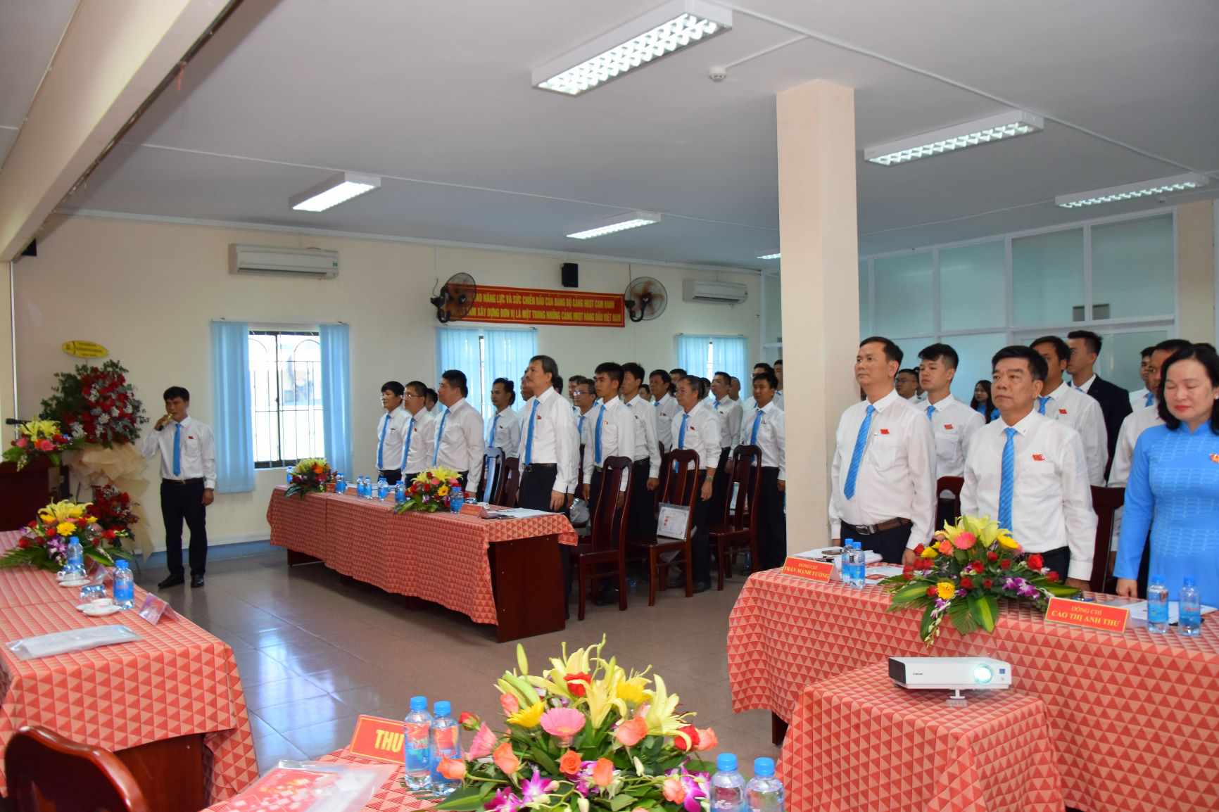 Đồng chí Lại Xuân Thanh - Bí thư Đảng ủy, Chủ tịch HĐQT tặng hoa chúc mừng BCH Đảng bộ Cảng HKQT Cam Ranh nhiệm kỳ 2020 - 2025