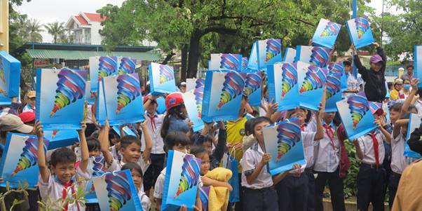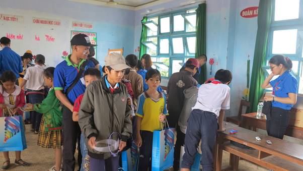 Niềm vui của hơn 300 em học sinh khi nhận quà từ Ban tổ chức
