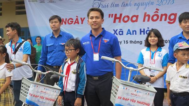 Đại diện Đoàn Thanh niên ACV cùng Ban tổ chức trao quà, học bổng, xe đạp cho bà con các cháu học sinh có hoàn cảnh khó khăn