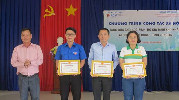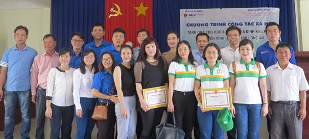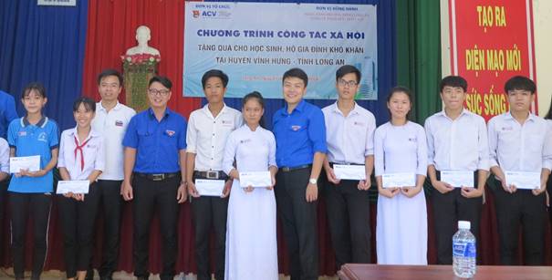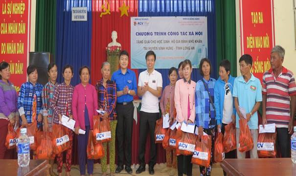 Ngày 27/10/2018, Ban Thường vụ Đoàn Thanh niên Tổng công ty Cảng hàng không Việt Nam (Đoàn Thanh niên ACV) phối hợp cùng Ngân hàng Phương Đông Long An, Công ty TNHH Hữu Triết A.D tổ chức chương trình công tác xã hộitại 2 xã giáp biên giới Vĩnh Trị và Khánh Hưng, huyện Vĩnh Hưng, tỉnh Long An.
