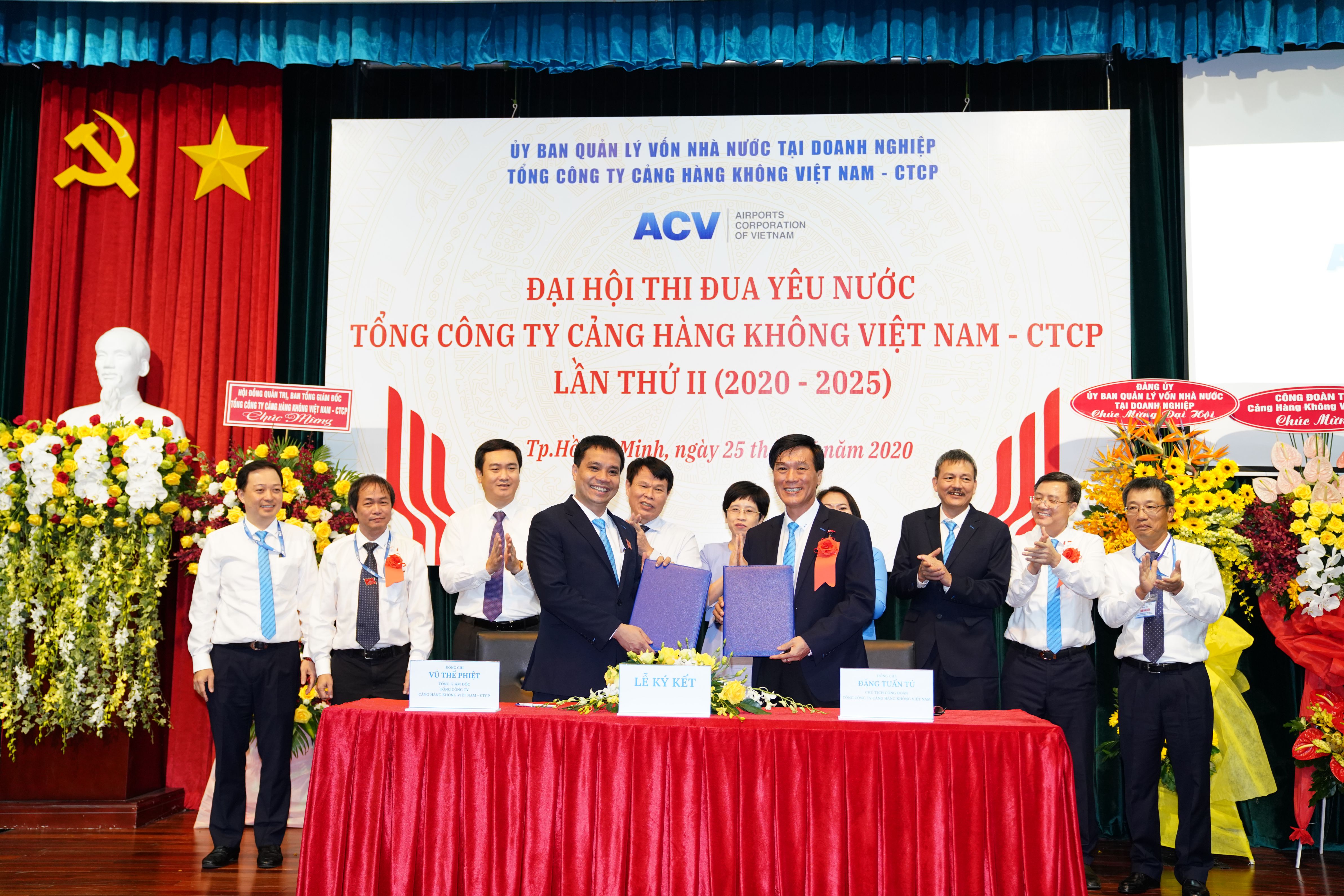 Tại Đại hội, đồng chí Vũ Thế Phiệt - Tổng Giám đốc Tổng công ty Cảng hàng không Việt Nam, Chủ tịch hội đồng thi đua khen thưởng Tổng công ty và đồng chí Đặng Tuấn Tú - Chủ tịch Công đoàn Tổng công ty đã ký kết và phát động phong trào thi đua yêu nước giai đoạn 2020-2025.