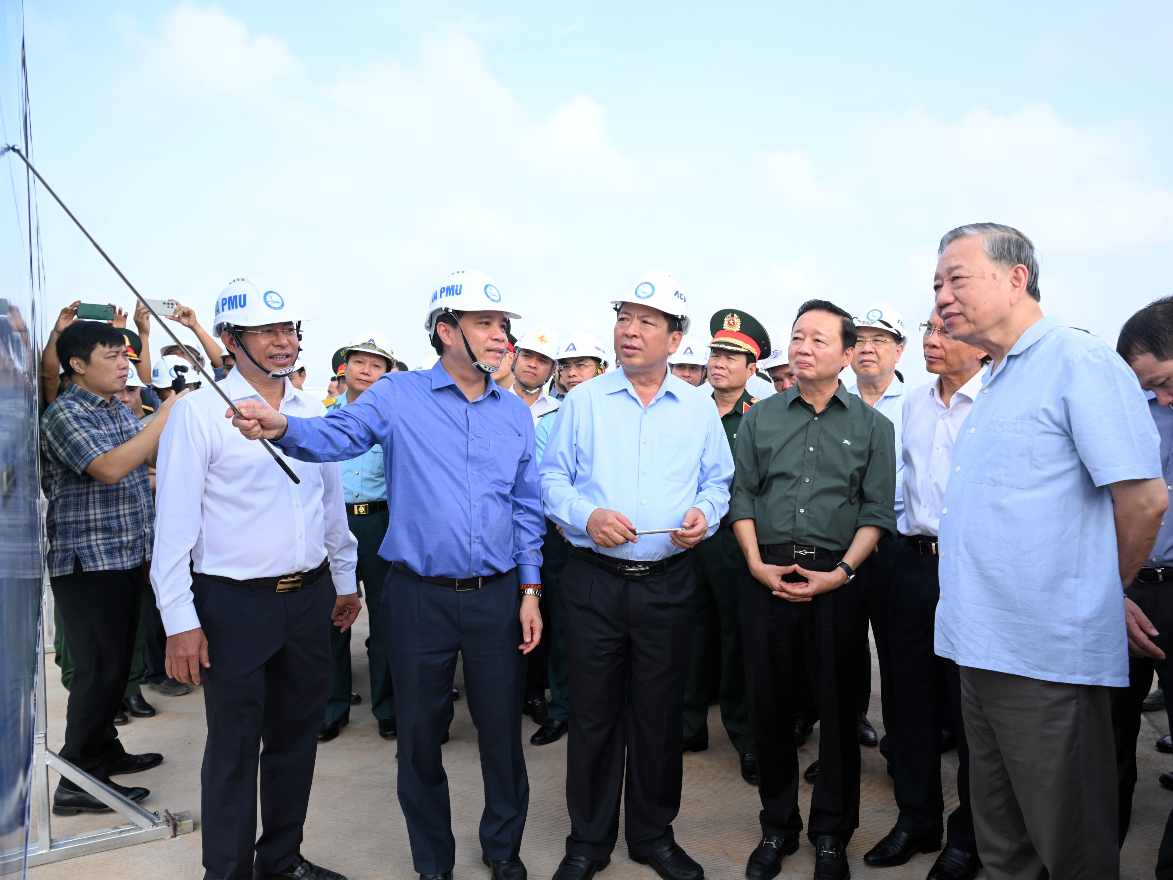 Tổng Bí thư Tô Lâm nhấn mạnh, Cảng HKQT Long Thành là công trình trọng điểm quốc gia, có giá trị đầu tư rất lớn, công suất lớn, dự kiến khi hoàn thành sẽ đưa Việt Nam vào nhóm trung tâm trung chuyển hàng không quốc tế hàng đầu khu vực châu Á - Thái Bình Dương.