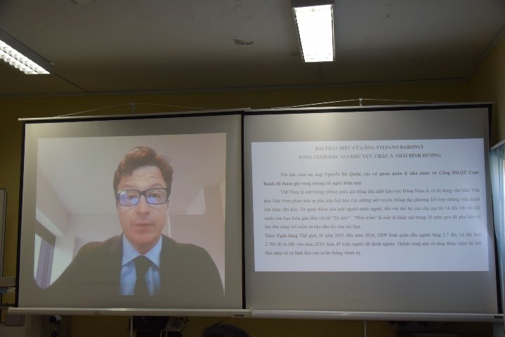 Ông Luis Felipe de Oliveira và ông Stefano Baronci phát biểu trực tuyến tại buổi lễ