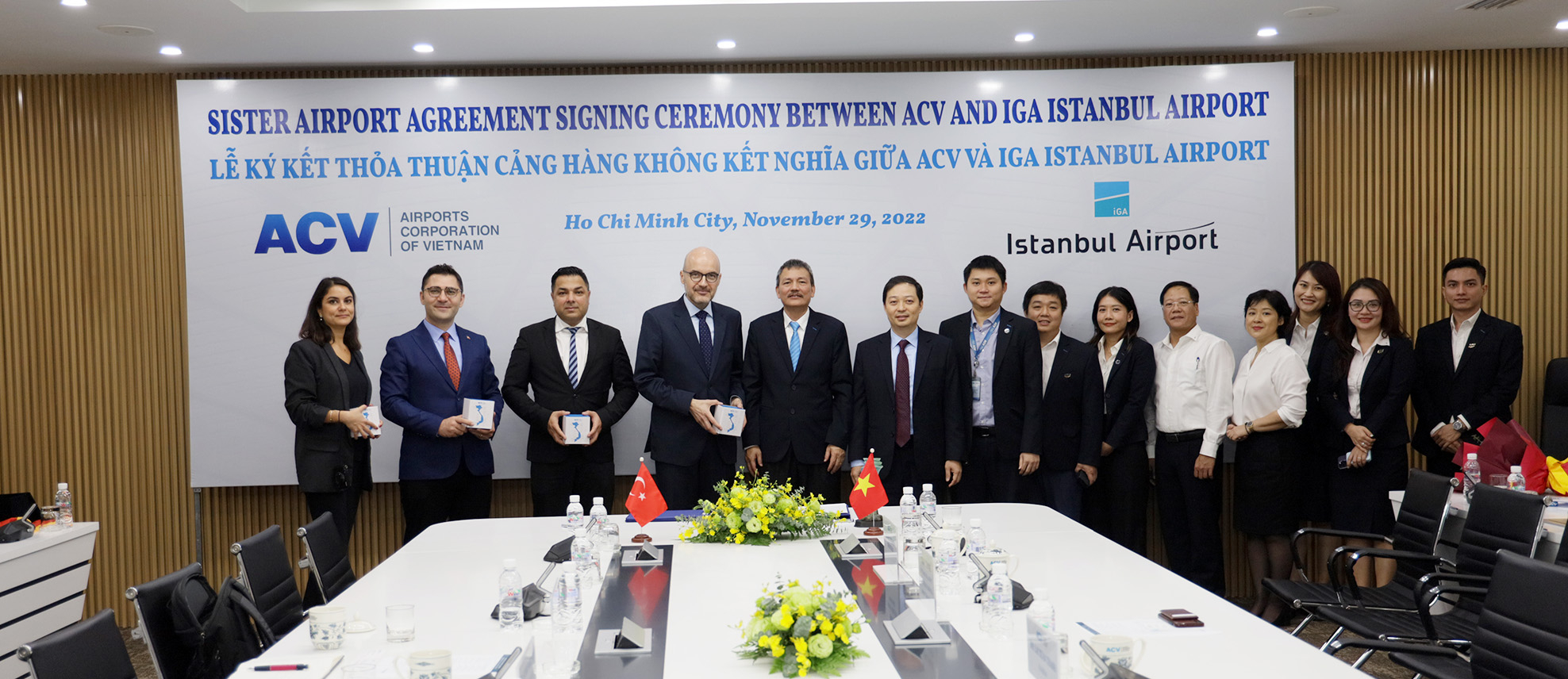Ngày 29/11/2022, Tổng công ty Cảng hàng không Việt Nam – CTCP (ACV) và Cảng hàng không quốc tế Istanbul (IGA), Thổ Nhĩ Kỳ đã ký kết thỏa thuận cảng hàng không kết nghĩa (Sister Airport Agreement) tại trụ sở ACV.