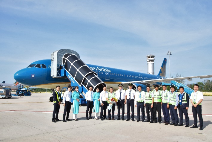 Lãnh đạo Cảng HKQT Cam Ranh tặng hoa tổ bay chuyến bay VN1552