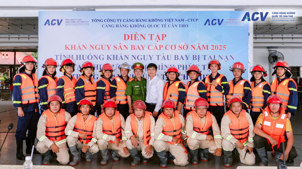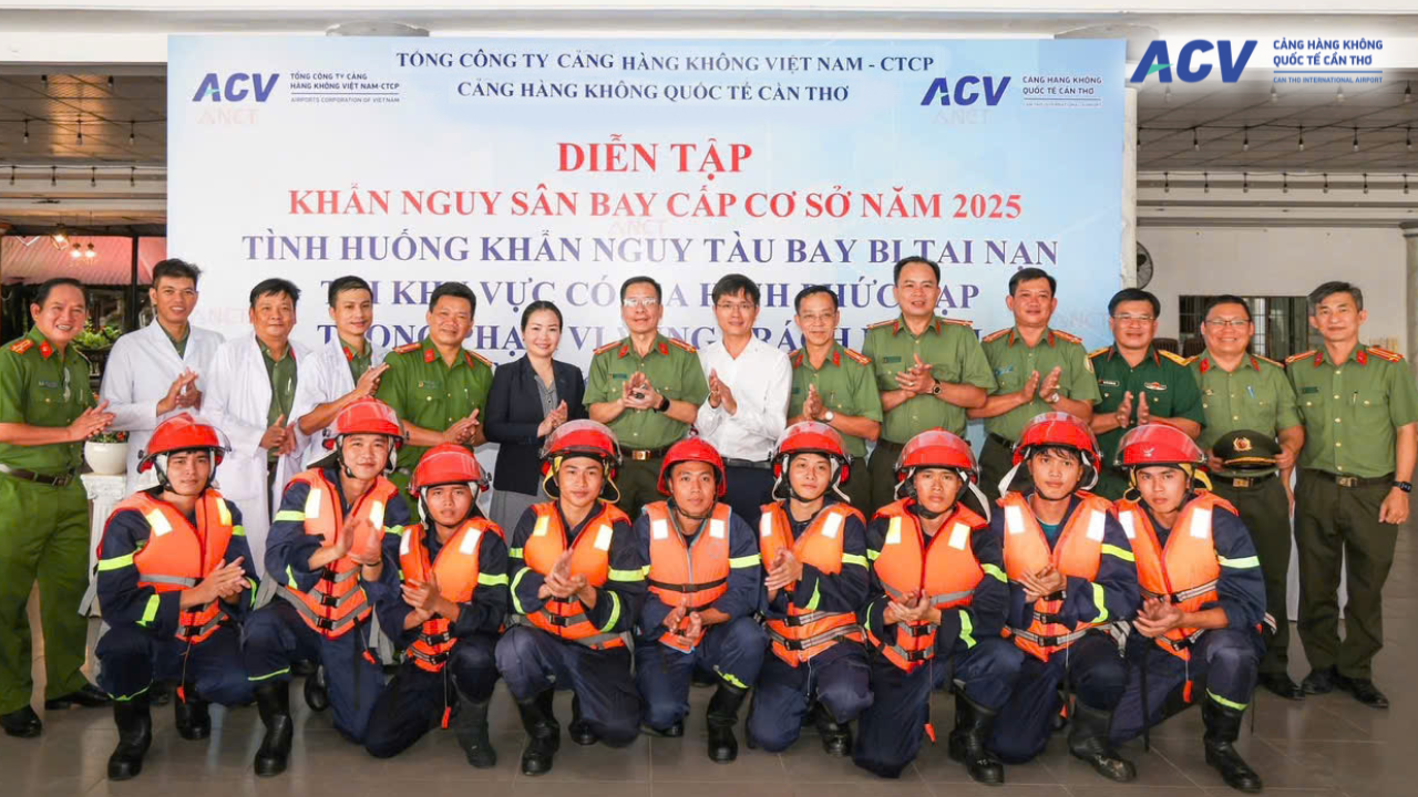 Chiều ngày 17/10/2025, Cảng HKQT Cần Thơ chủ trì, phối hợp với Công an thành phố Cần Thơ và các lực lượng chức năng tổ chức Chương trình Diễn tập khẩn nguy sân bay cấp cơ sở năm 2025. Tình huống giả định được đặt ra là tàu bay gặp sự cố, buộc phải hạ cánh khẩn cấp xuống khu vực sông Hậu, đòi hỏi sự hiệp đồng tác chiến cao độ giữa các lực lượng.