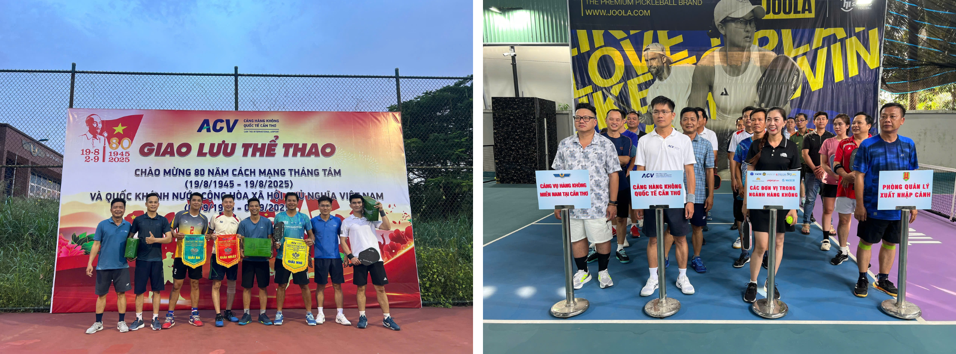 Ngày 22/8/2025, Cảng HKQT Cần Thơ tiếp tục tổ chức giao lưu bóng chuyền với Tiểu đoàn Tác chiến điện tử và giao lưu Pickleball với các đơn vị trong ngành. Các trận đấu đều diễn ra trong không khí thân thiện, thể hiện tinh thần đồng đội cao, và là dịp để các đơn vị học hỏi, kết nối, xây dựng văn hóa thể thao chung.
