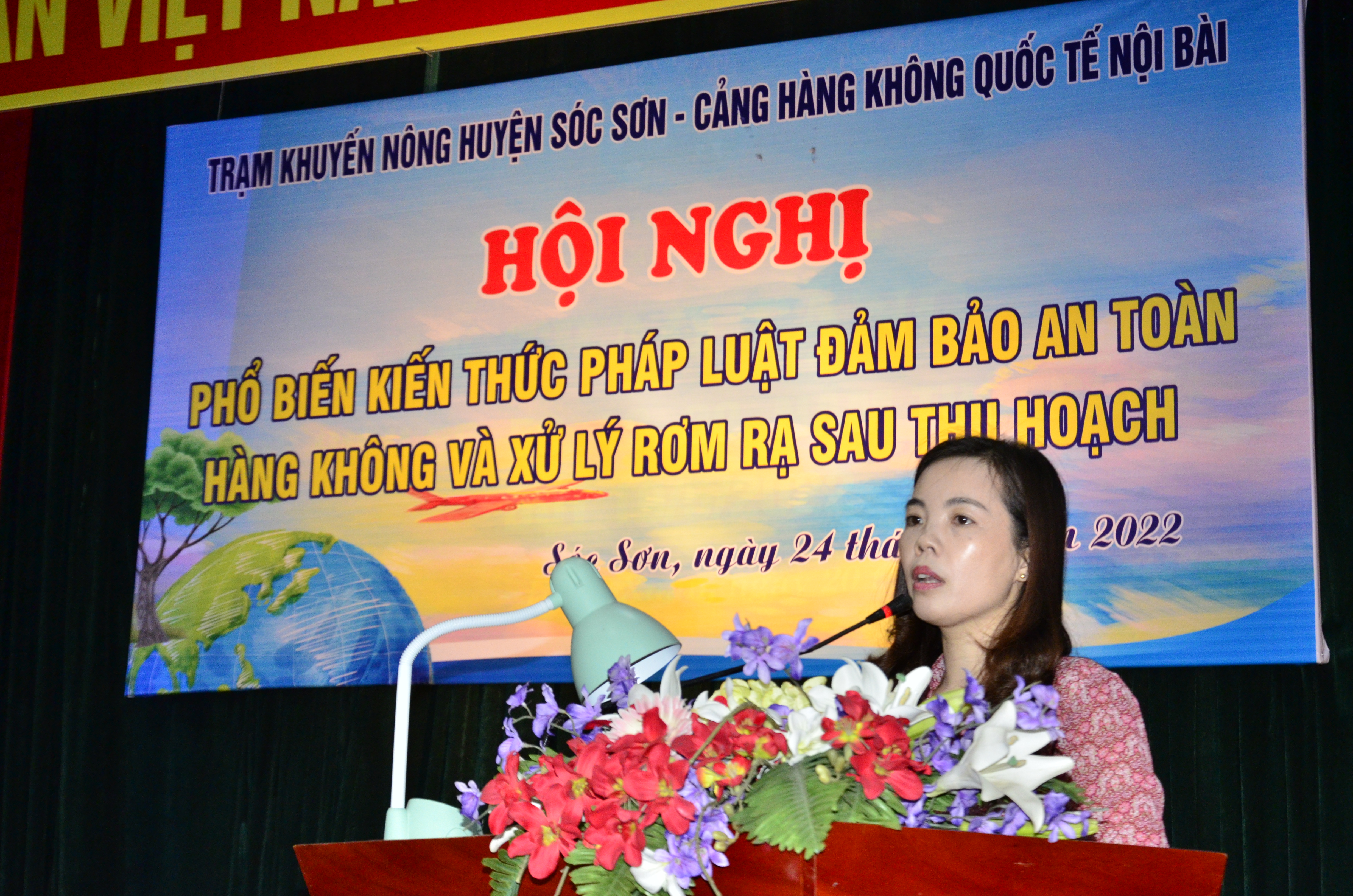 Sáng ngày 24/05/2022, tại Hội trường UBND xã Đông Xuân, huyện Sóc Sơn, Hà Nội, Cảng HKQT Nội Bài đã phối hợp với UBND xã Đông Xuân tổ chức hội nghị phổ biến kiến thức pháp luật đảm bảo ATHK và xử lý rơm rạ sau thu hoạch. Tham dự Hội nghị có đại diện Cảng vụ hàng không miền Bắc, thành viên tổ An toàn đường cất hạ cánh và Đoàn viên thanh niên Cảng HKQT Nội Bài, Công ty CP sinh thái Nông Việt, Trạm khuyến nông huyện Sóc Sơn, đại diện chính quyền và đông đảo người dân xã Đông Xuân, huyện Sóc Sơn, Hà Nội. Phát biểu khai mạc hội nghị, bà Đỗ Thị Bích Vân - Phó Chủ tịch UBND xã Đông Xuân nhấn mạnh tầm quan trọng của việc tập huấn cho bà con nông dân trong việc nhận thức tác hại của việc đốt rơm rạ đối với hoạt động bay, đồng thời cho biết xã Đông Xuân đã xây dựng và triển khai tới người dân trên địa bàn về kế hoạch xử lý rơm rạ thành phân hữu cơ.