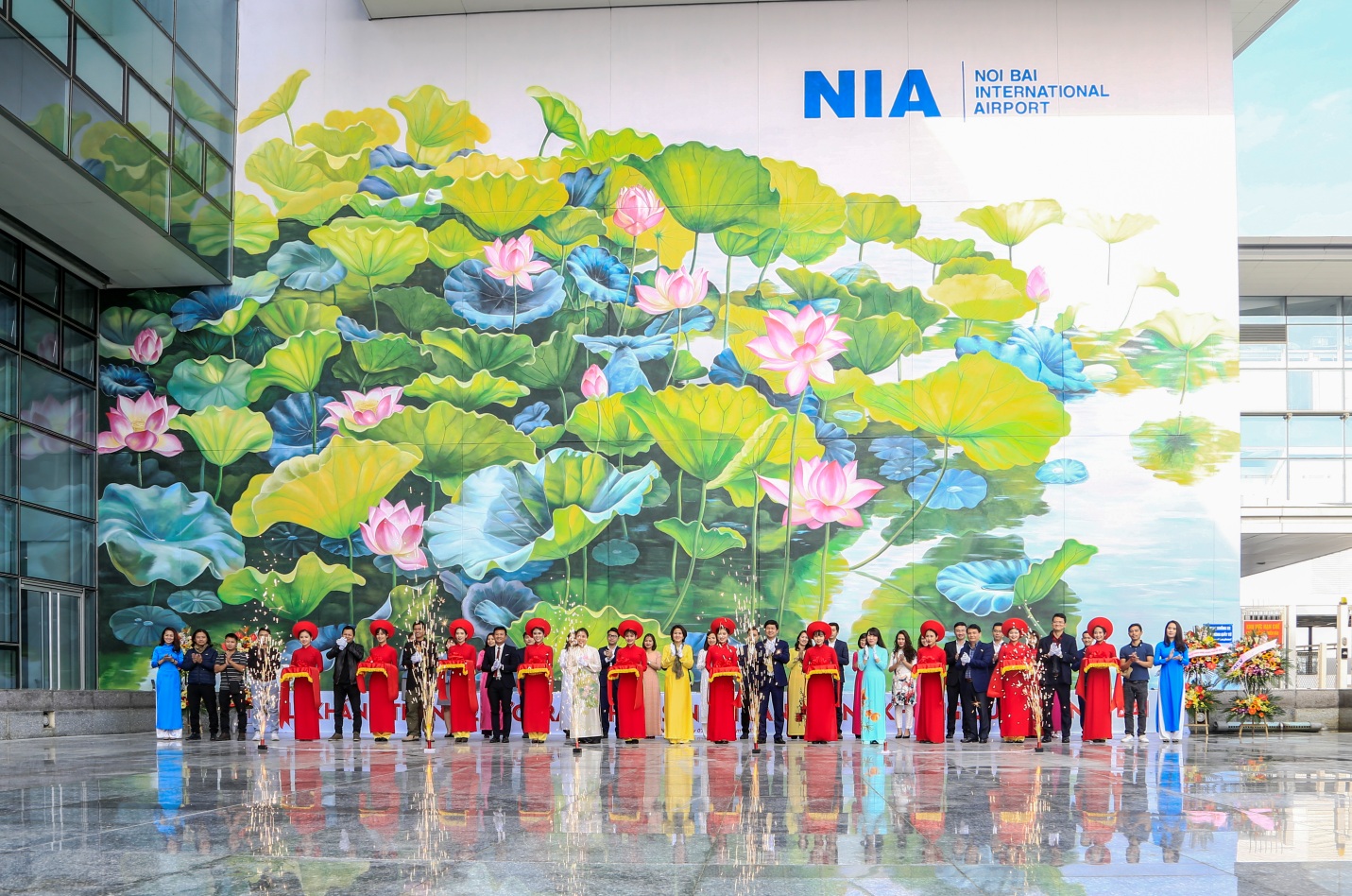 Vào 14h00 ngày 03/01/2019, bà Nguyễn Thị Kim Ngân – Phó giám đốc Cảng HKQT Nội Bài và bà Nguyễn Thị Thu Thủy – Giám đốc Công ty TNHH Nghệ Thuật Tân Hà Nội cùng nhóm họa sỹ và đông đảo CBCNV của Cảng HKQT Nội Bài đã long trọng cắt băng khánh thành 02 bức tranh hoa sen tại hai đầu Đông, Tây Nhà ga quốc tế T2.