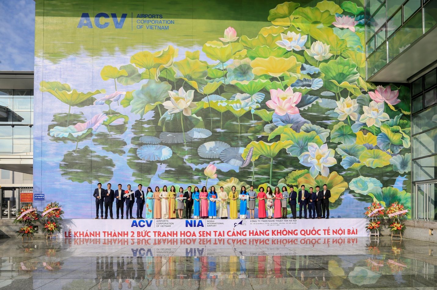 Sau hơn 02 tháng thực hiện, 02 bức tranh sen đã được hoàn thành, soi bóng xuống hai hồ nước, phản chiếu lên tường kính, tạo hiệu ứng như hai đầm sen lớn, xanh mướt, đẹp mắt. Đây là hạng mục nằm trong khuôn khổ các hoạt động xây dựng không gian văn hóa, cảnh quan, môi trường sinh thái tại Cảng HKQT Nội Bài. Hai bức tranh sen tạo điểm nhấn mới, mềm mại, duyên dáng, bình yên trong cái bận rộn thường ngày của nhà ga quốc tế, thu hút sự quan tâm, check-in của đông đảo hành khách và CBNV làm việc tại đây.