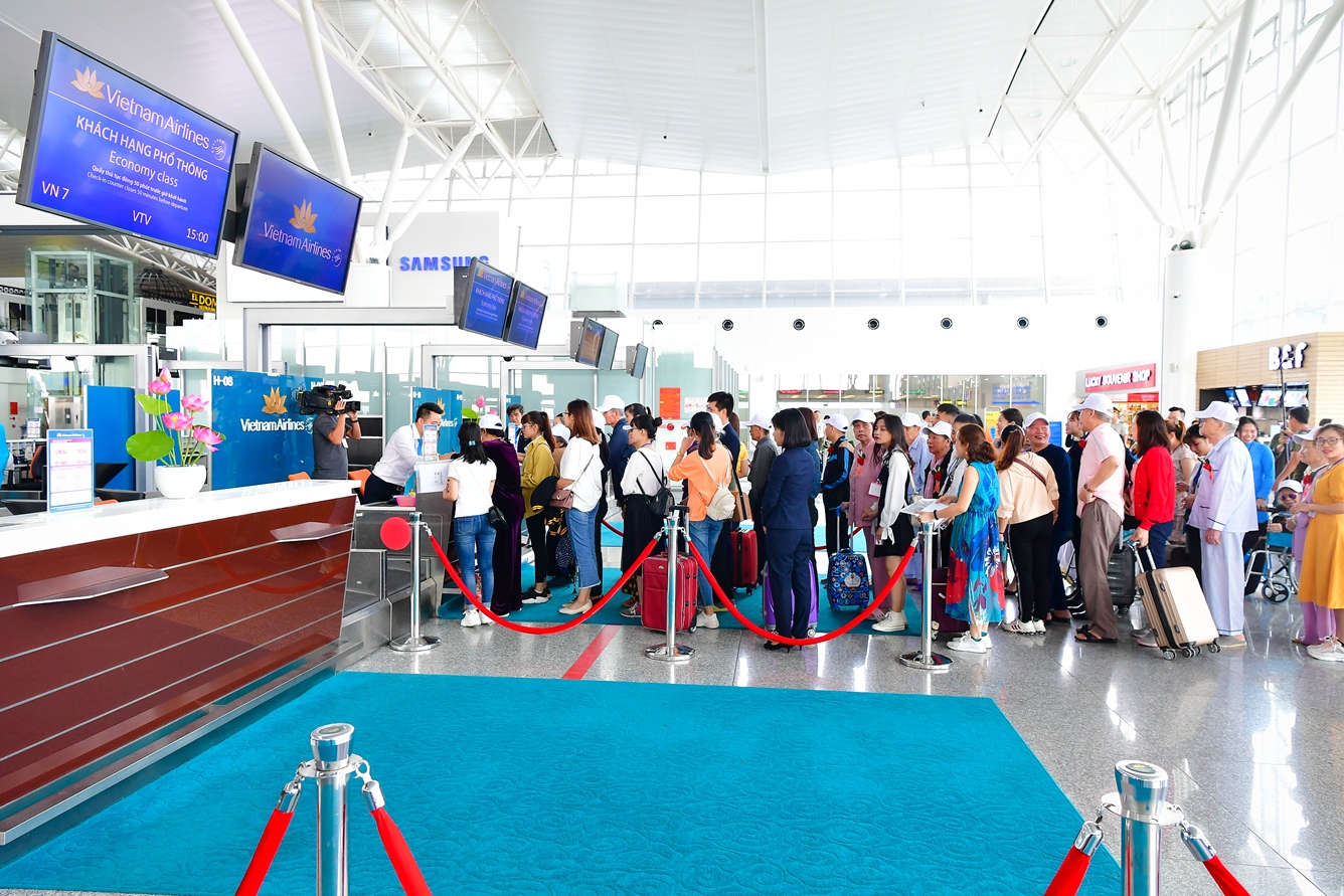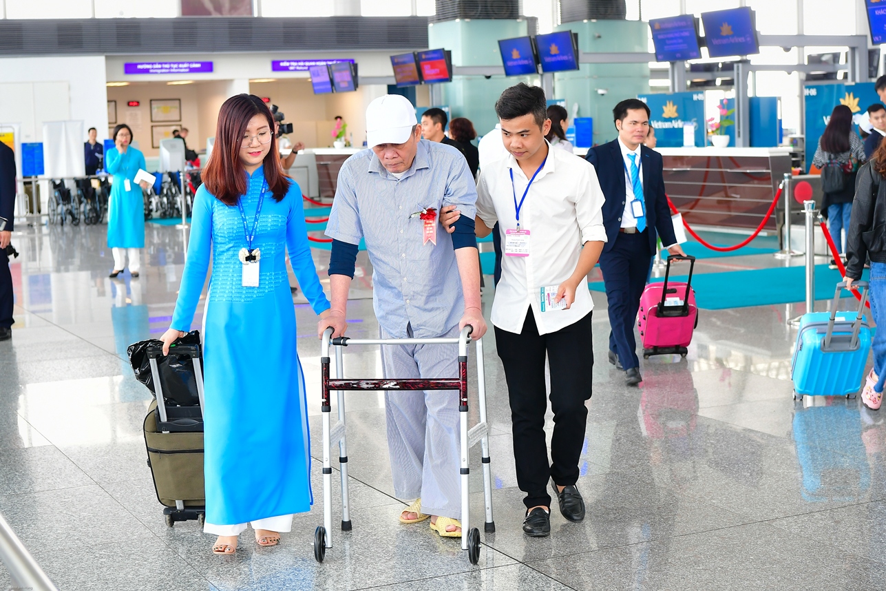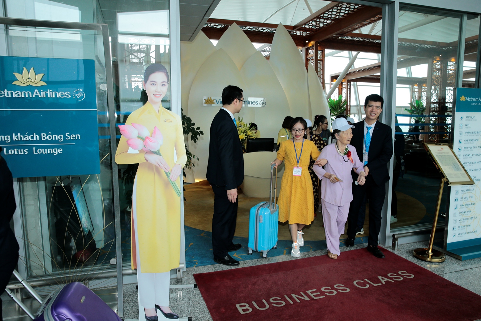 Toàn thể dây chuyền phục vụ bay được chuẩn bị: từ khâu đón khách, làm thủ tục check-in, kiểm tra an ninh, thủ tục xuất cảnh, soi chiếu, boarding tàu bay. Lực lượng CBNV Cảng HKQT Nội Bài, từ Trực ban trưởng, lực lượng An ninh hàng không, điều hành sân bay, nòng cốt là thanh niên đã được huy động, tham gia hỗ trợ tận tình từ khi các cụ xuống xe ô tô cho đến khi các cụ đặt chân lên chiếc tàu bay thế hệ mới Boeing 787.