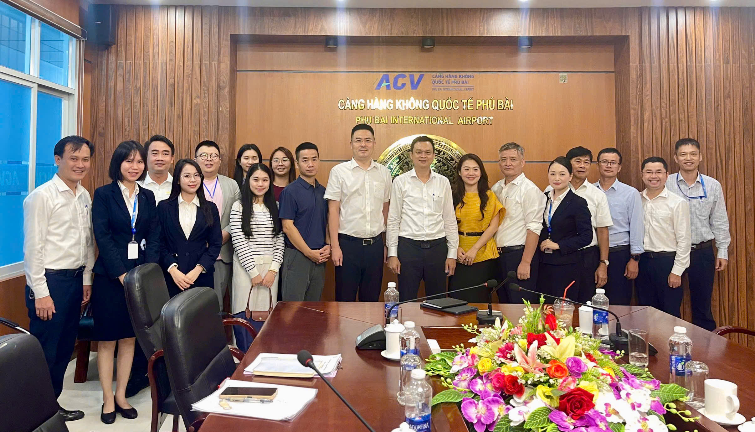 Vào chiều cùng ngày, Cảng HKQT Phú Bài và Ban Kinh doanh – Phát triển thị trường Tổng ty Cảng hàng không Việt Nam – CTCP (ACV) đã có buổi làm việc với đoàn công tác Hãng hàng không Donghai Airlines do ông Jin Zhang – Giám đốc AOC làm trưởng đoàn.