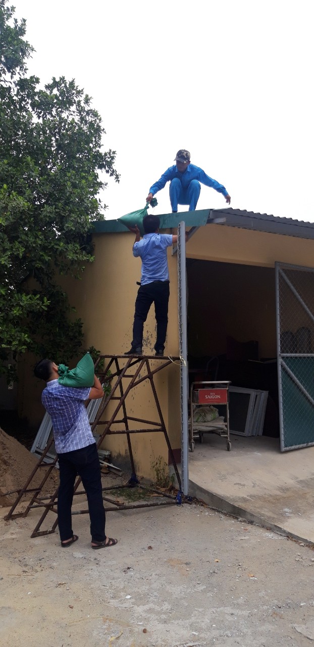 CBCNV dùng bao cát gia cố mái tôn