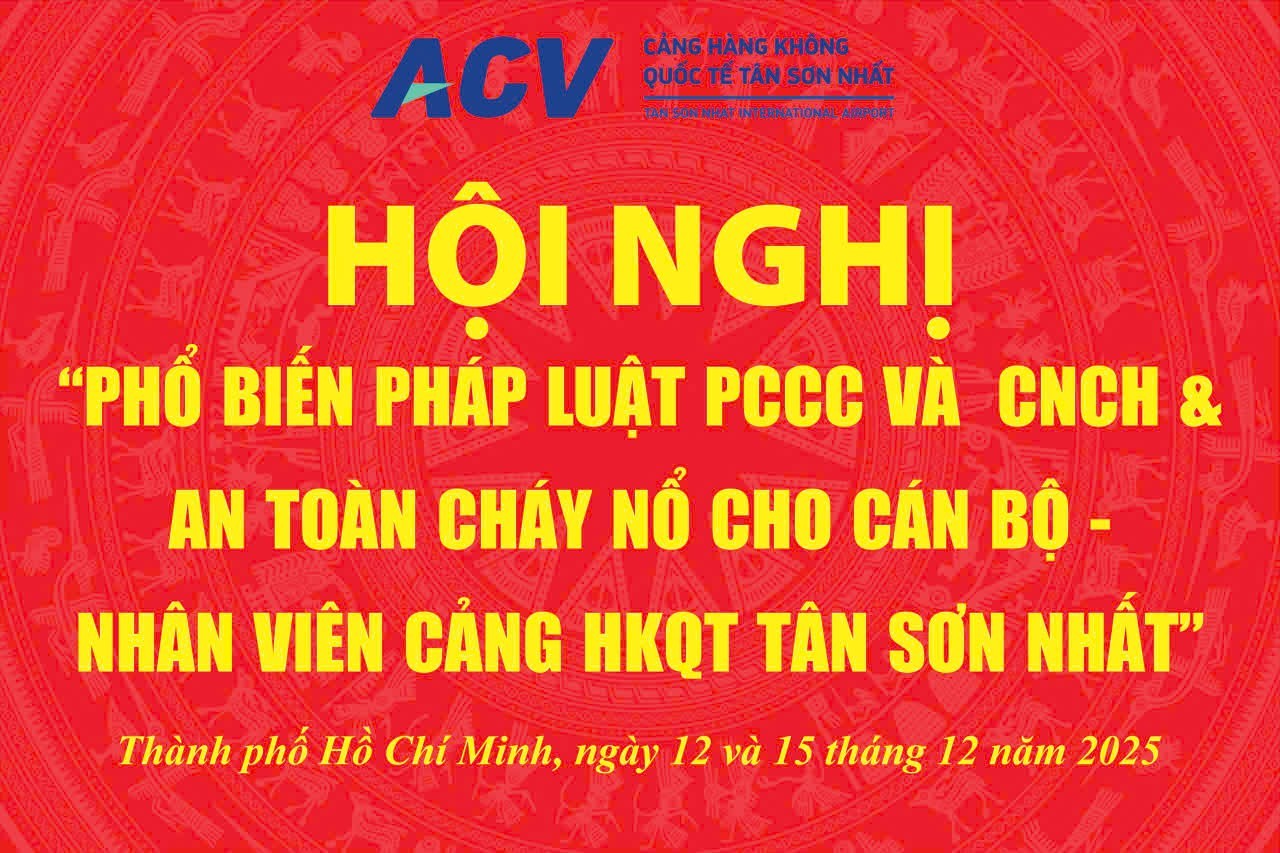 Trong hai ngày 12/12/2025 và 15/12/2025, tại trụ sở Tổng công ty Cảng hàng không Việt Nam (ACV), Cảng HKQT Tân Sơn Nhất đã tổ chức khóa "Bồi dưỡng nghiệp vụ và Huấn luyện công tác Phòng cháy chữa cháy, Cứu nạn cứu hộ (PCCC&CNCH)" năm 2025 cho toàn thể cán bộ, nhân viên (CBNV) đơn vị.