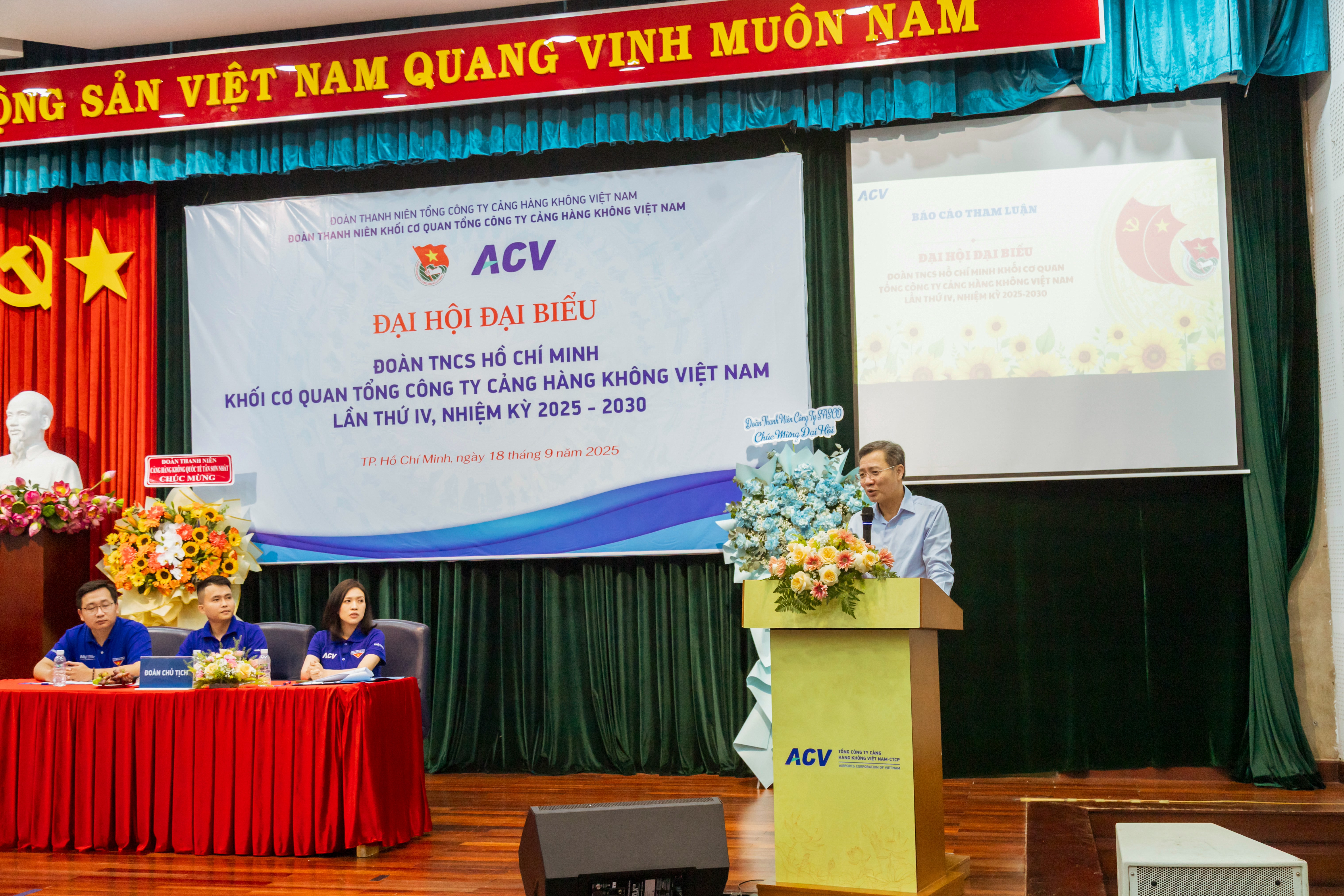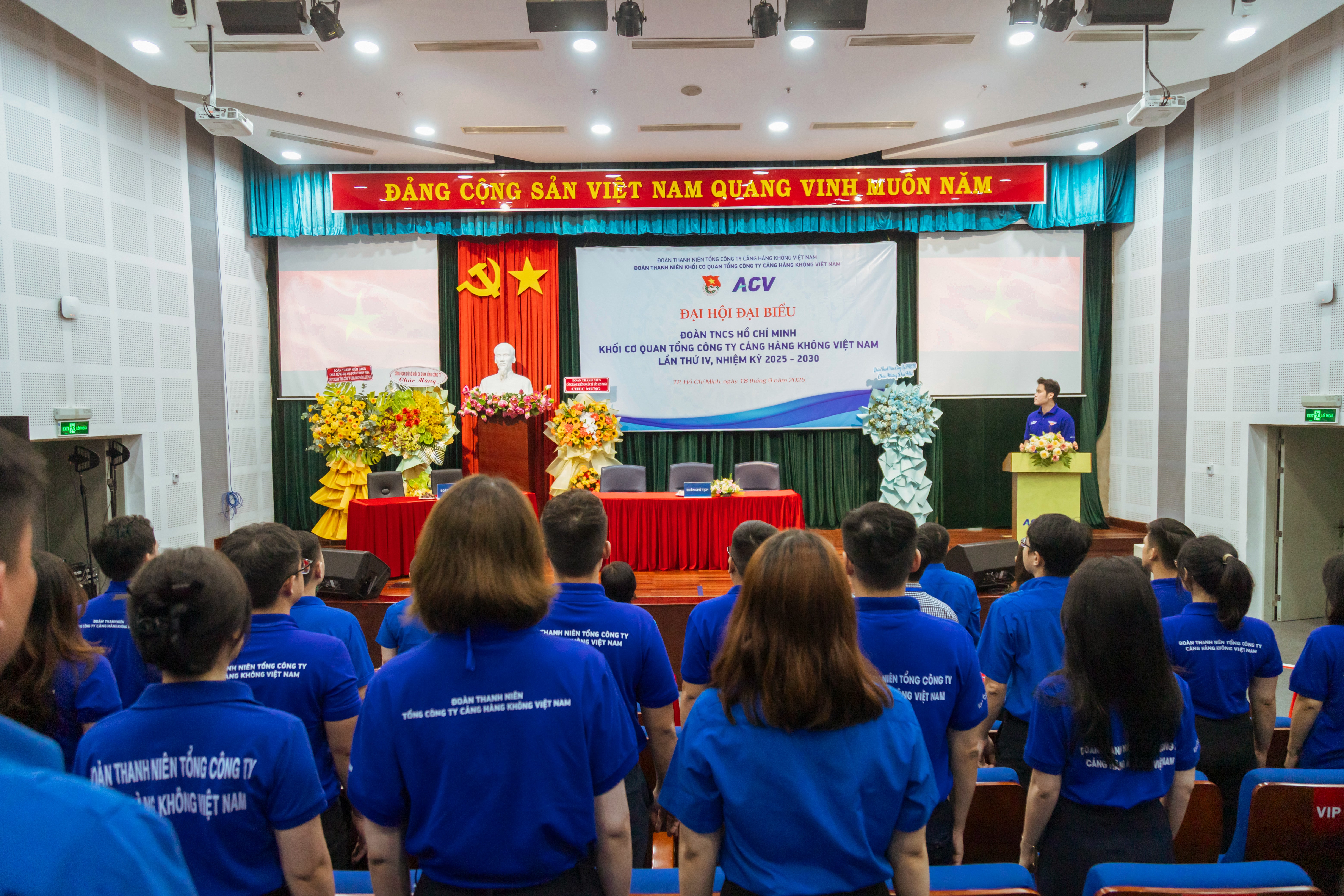 Ngày 18/9/2025, tại hội trường tòa nhà Tổng công ty Cảng hàng không Việt Nam – CTCP (ACV) đã diễn ra Đại hội Đại biểu Đoàn TNCS Hồ Chí Minh Khối cơ quan lần thứ IV, nhiệm kỳ 2025–2030; với sự tham dự của 68 đại biểu tiêu biểu đại diện cho 252 đoàn viên đến từ 12 chi đoàn trực thuộc, thể hiện tinh thần đoàn kết, bản lĩnh và nhiệt huyết của tuổi trẻ Khối cơ quan Tổng công ty.