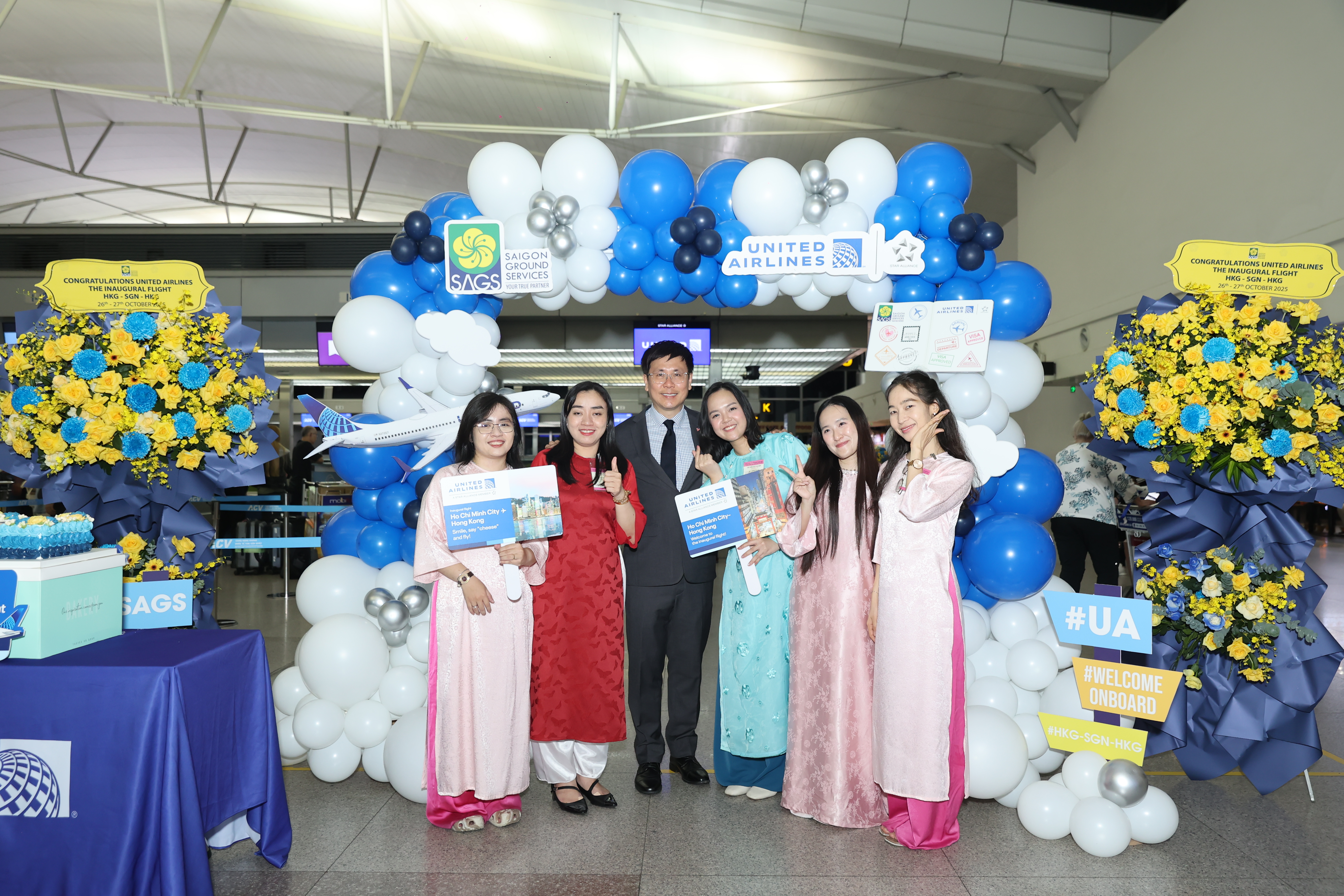 United Airlines chào mừng các hành khách làm thủ tục chuyến bay đầu tiên tại ga đi quốc tế T2 - Cảng HKQT Tân Sơn Nhất