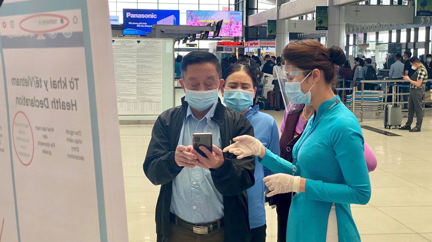 Nhân viên VietnamAirlines hỗ trợ khách khai báo y tế online