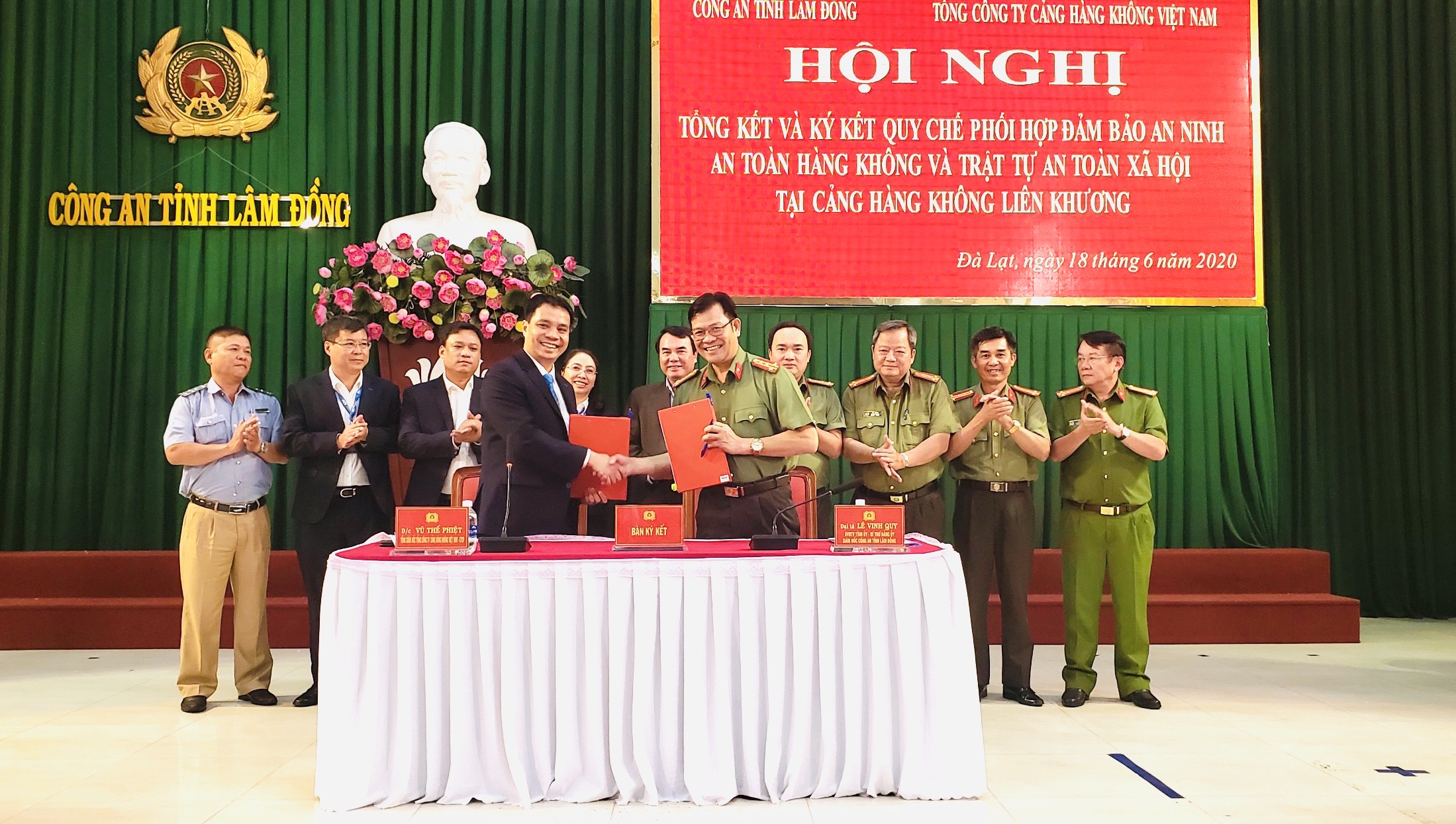 Chiều 18/6/2020, tại Hội trường Công an tỉnh Lâm Đồng, Tổng công ty Cảng hàng không Việt Nam – CTCP (ACV) và Công an tỉnh Lâm Đồng đã tổ chức Hội nghị tổng kết và ký kết mới Quy chế phối hợp trong công tác bảo đảm an ninh an toàn hàng không và trật tự an toàn xã hội tại Cảng hàng không Liên Liên Khương.