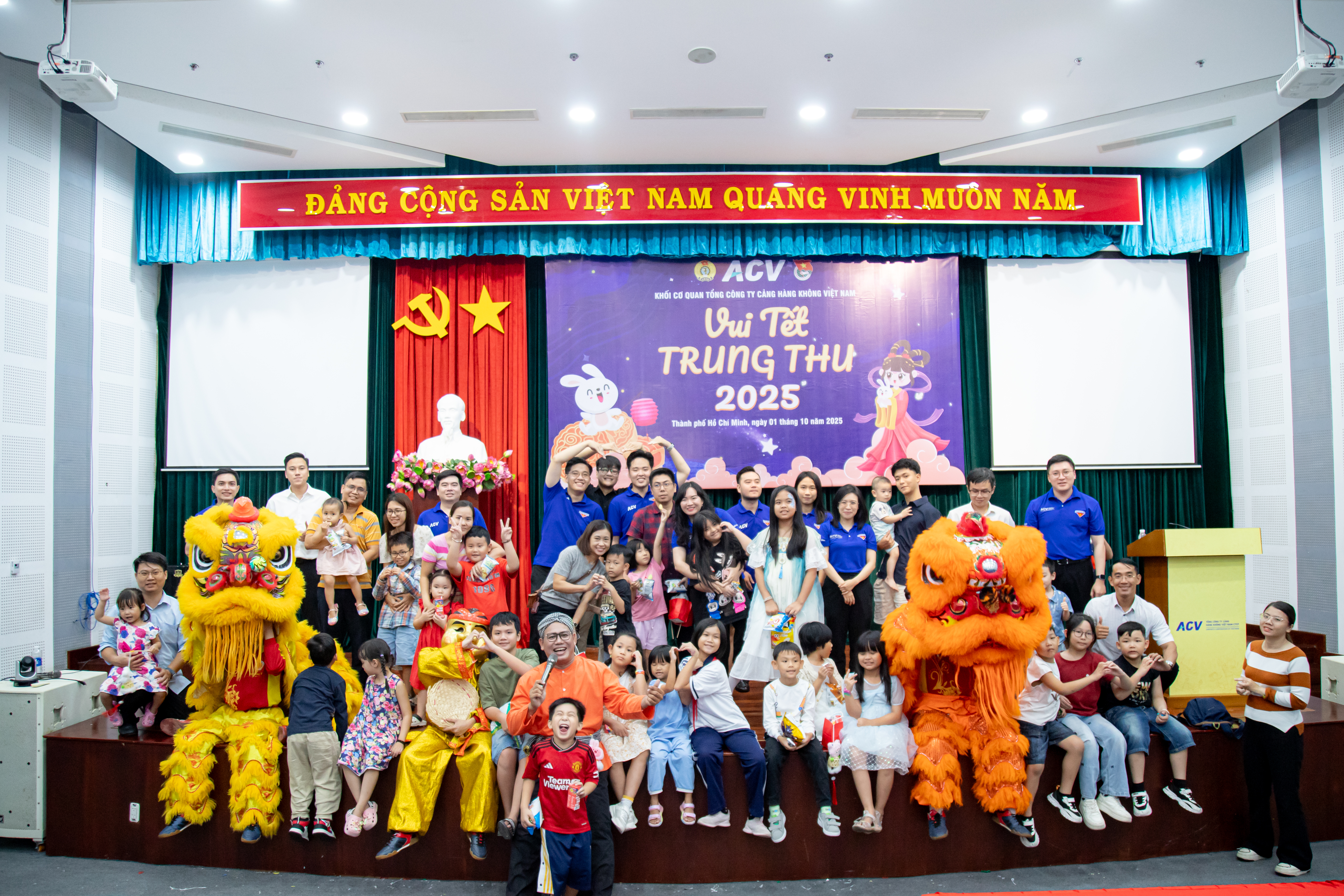 Ngày 01/10/2025, tại tòa nhà Tổng công ty Cảng hàng không Việt Nam - CTCP (ACV), Ban Chấp hành (BCH) Công đoàn - Đoàn Thanh niên Khối cơ quan đã phối hợp tổ chức chương trình vui Tết Trung thu năm 2025. Đây không chỉ là món quà tinh thần ý nghĩa cho các cháu thiếu nhi mà còn là dịp để đại gia đình Khối cơ quan thêm gắn kết.