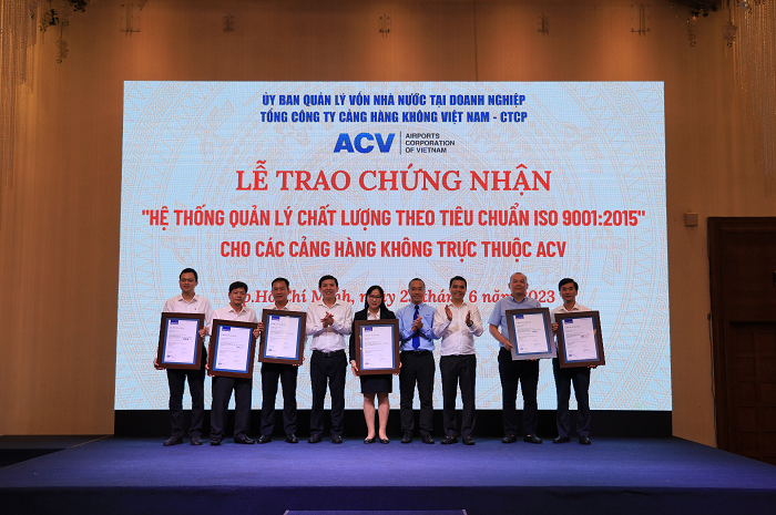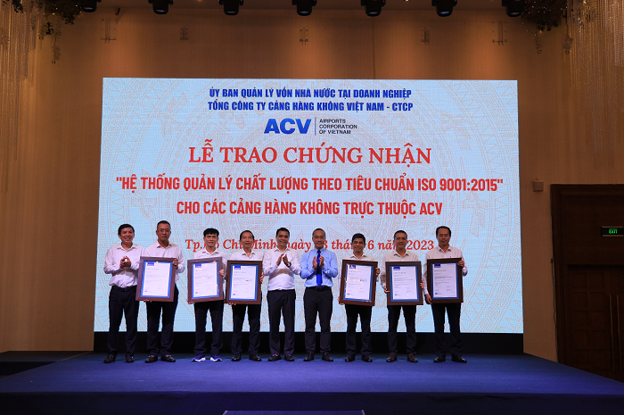 Ngày 23/6/2023, Tổng công ty Cảng hàng không Việt Nam (ACV) đã tổ chức lễ trao chứng nhận “Hệ thống quản lý chất lượng theo tiêu chuẩn ISO 9001-2015” cho 21 cảng hàng không trực thuộc ACV.