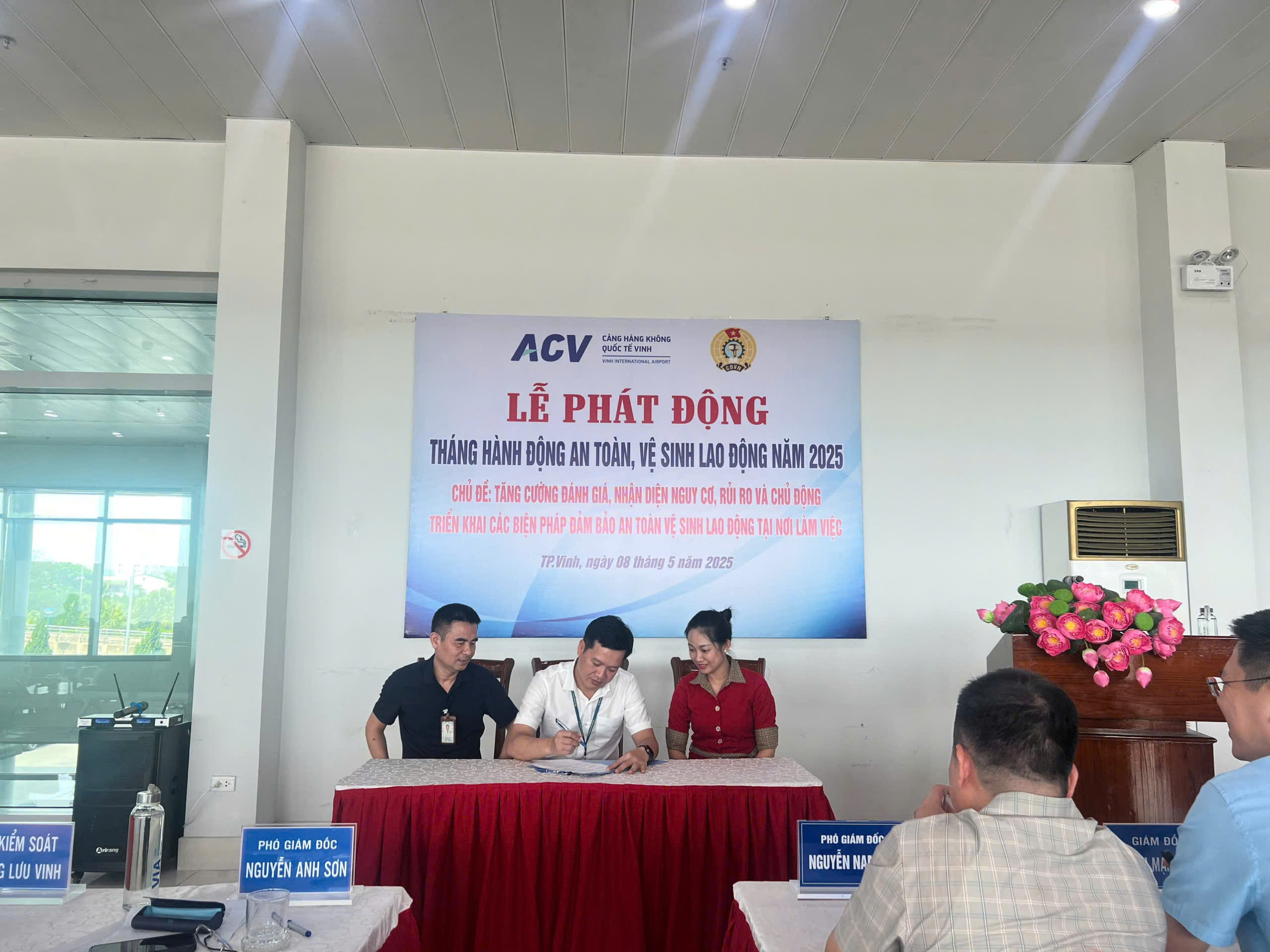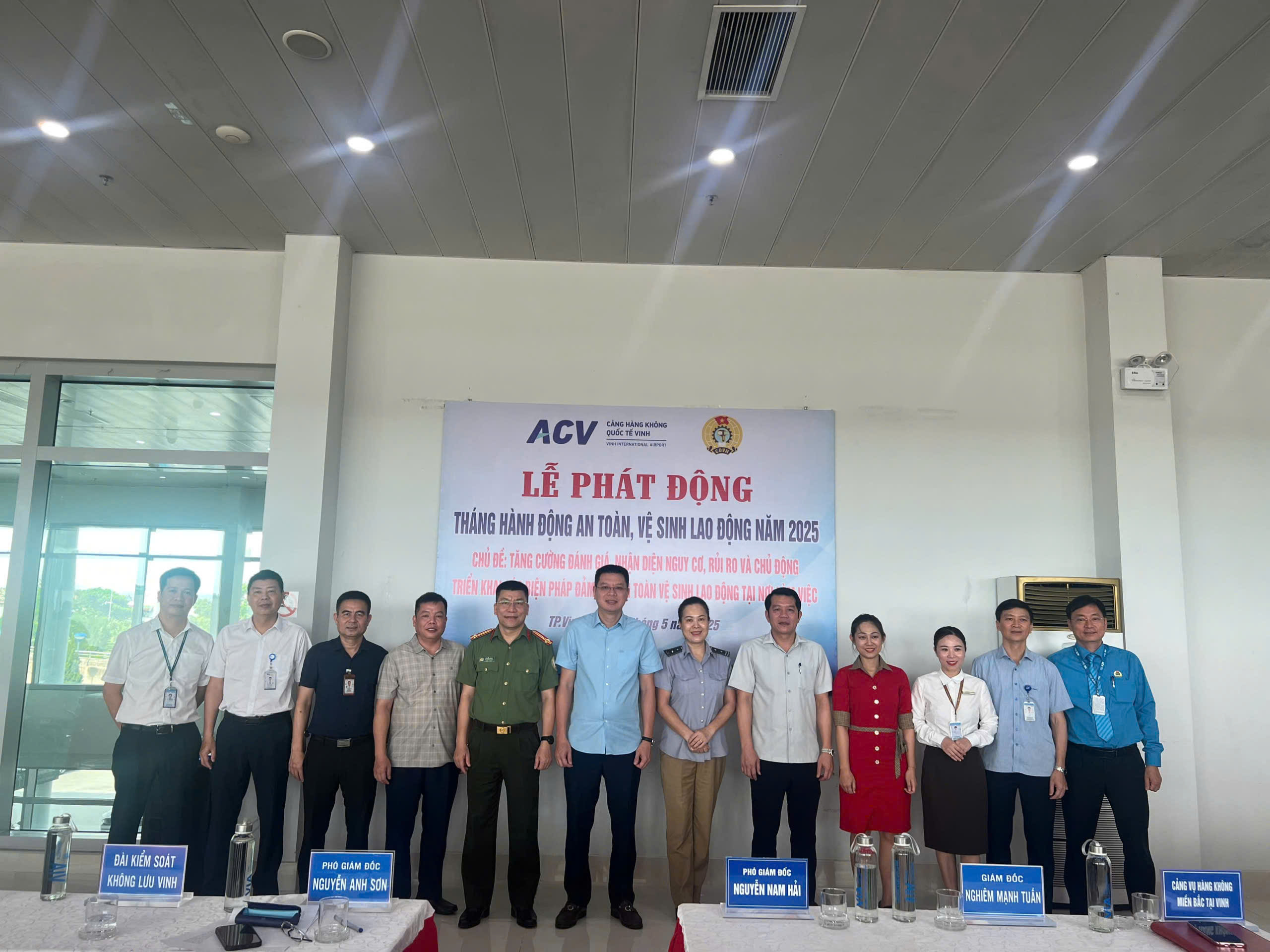 Hưởng ứng Tháng hành động về an toàn, vệ sinh lao động (ATVSLĐ) năm 2025, sáng ngày 08 tháng 5 năm 2025, Cảng Hàng không quốc tế (HKQT) Vinh đã tổ chức Lễ phát động Tháng hành động với chủ đề: “Tăng cường đánh giá, nhận diện nguy cơ, rủi ro và chủ động triển khai các biện pháp bảo đảm an toàn, vệ sinh lao động tại nơi làm việc của Cảng HKQT Vinh.”