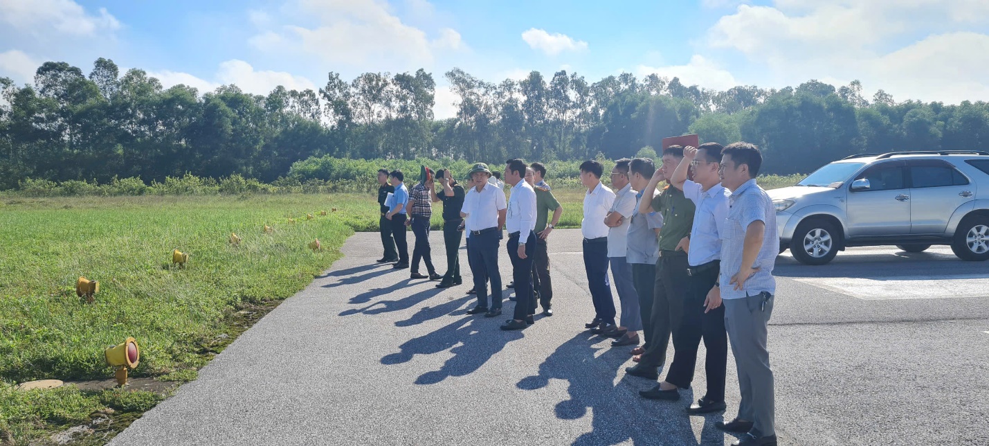 Ảnh: Đại diện các đơn vị kiểm tra, khảo sát thực tế khu bay và các khu vực lân cận Cảng HKQT Vinh